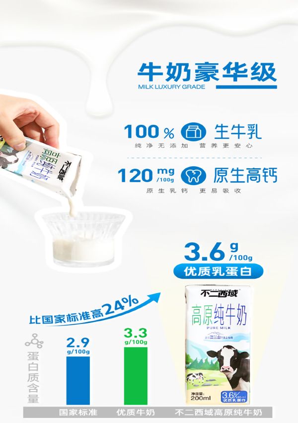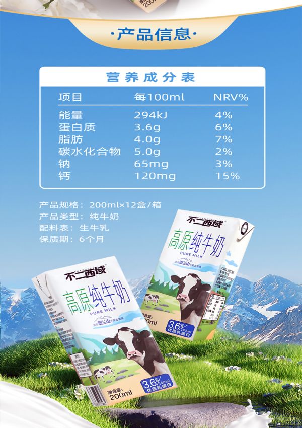 商品名称:不二西域高原纯牛奶200ml*12盒*3箱