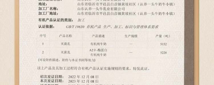 商品名称:认养一头牛 A2-β酪蛋白有机纯牛奶 250ml*10盒*2提