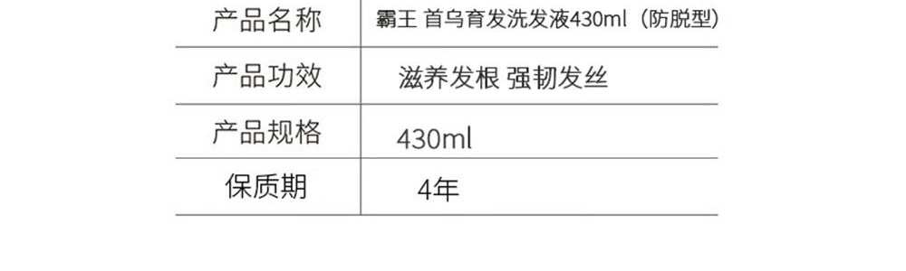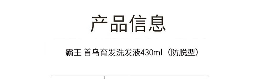 商品名称:霸王 首乌育发洗发液(防脱型)430ml/瓶