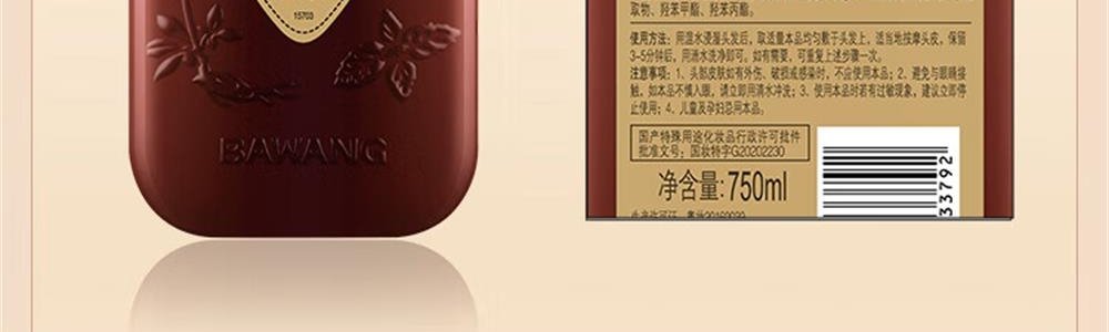 商品名称:霸 王首乌固发洗发液(防脱型)750ml/瓶