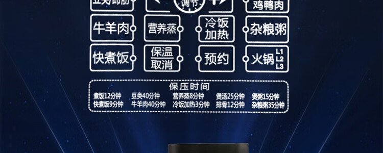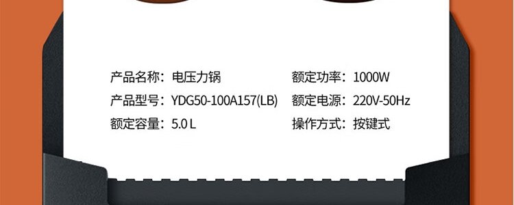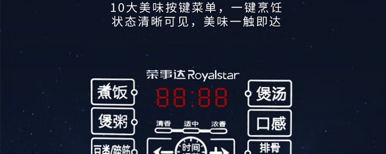 商品名称:荣事达(Royalstar)智能电高压锅电饭锅5L YDG50-100A157(LB)