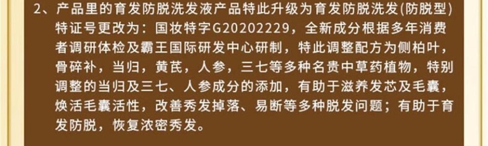 商品名称:霸王 育发防脱洗发水380ml/瓶+毛囊滋养原液55ml/瓶