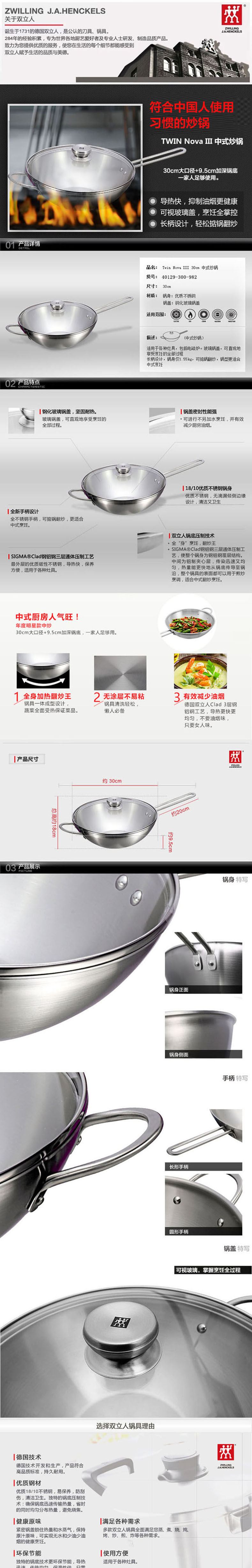 商品名称:ZWILLING/双立人TWIN Nova Ⅲ 30cm中式炒锅40129-300-982