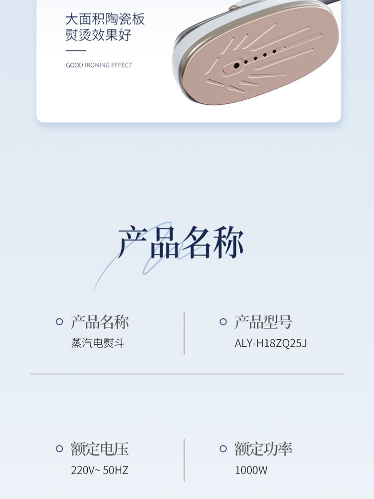 商品名称:ACA/北美电器蒸汽电熨斗ALY-H18ZQ25J