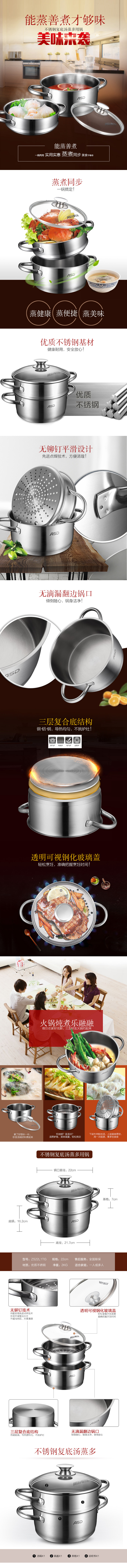 商品名称:【京东配送】ASD/爱仕达22cm不锈钢三层多用蒸锅ZS22L1TG