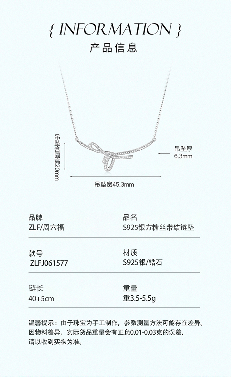 商品名称:周六福S925银方糖丝带结项链ZLFJ061577