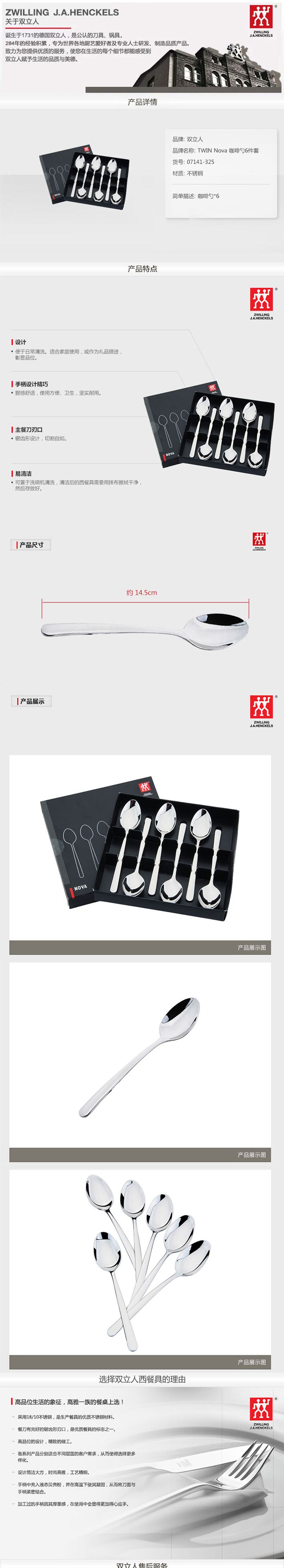 商品名称:ZWILLING/双立人TWIN Nova咖啡勺六件套07141-325