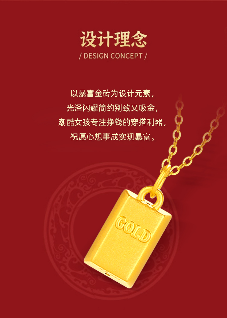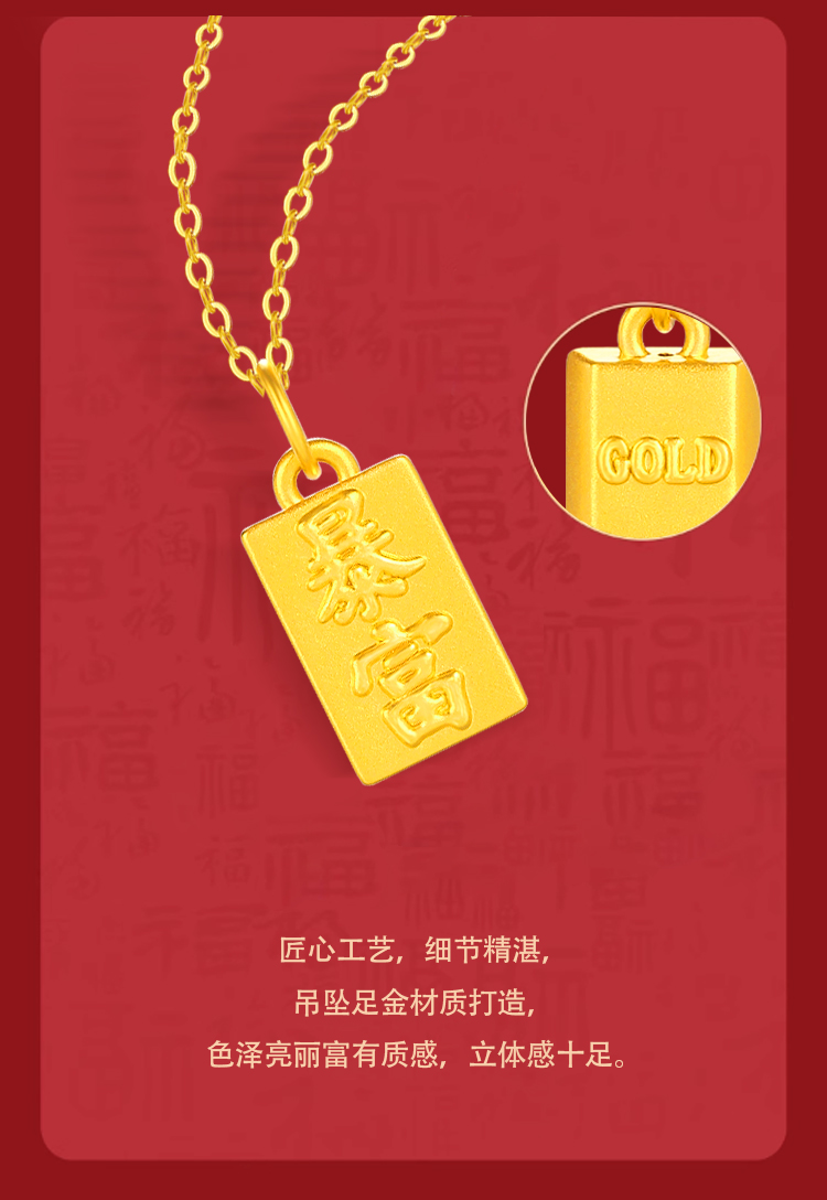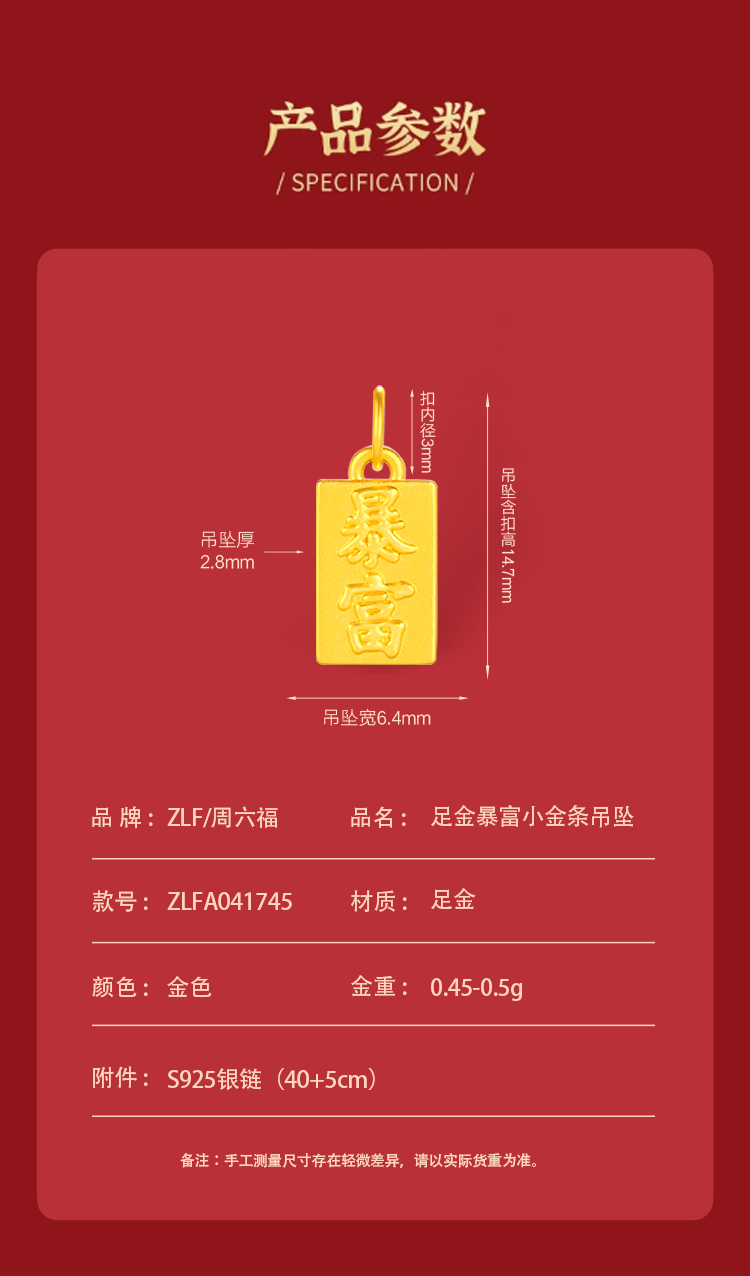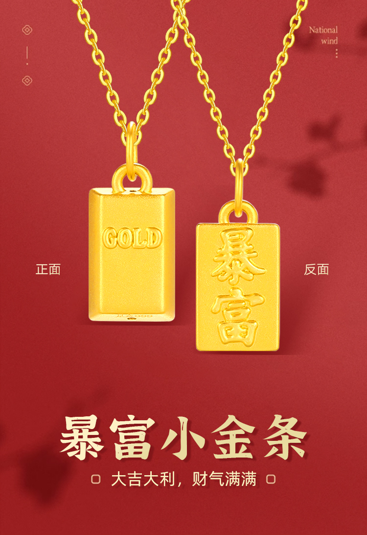 商品名称:周六福足金暴富小金条吊坠-送s925银链ZLFA041745