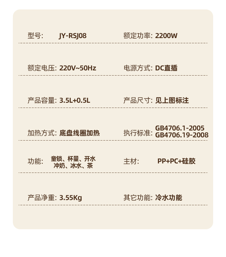 商品名称:gioia/焦亚0.5+3.5升即热饮水机JY-RSJ08