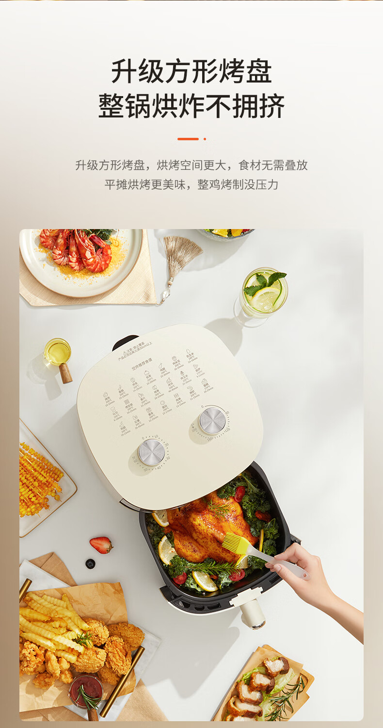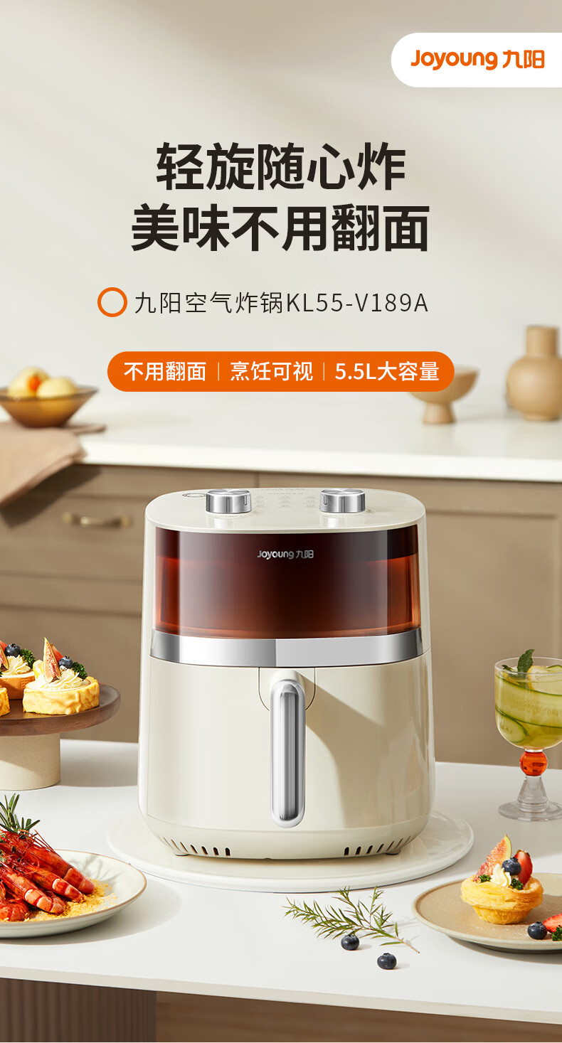 商品名称:Joyoung/九阳5.5升空气炸锅-奶油白KL55-V189A