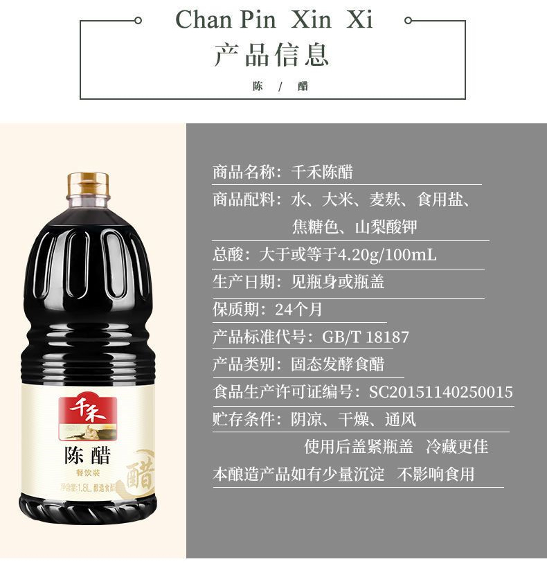 商品名称:千禾陈醋餐饮装1.8L*2瓶