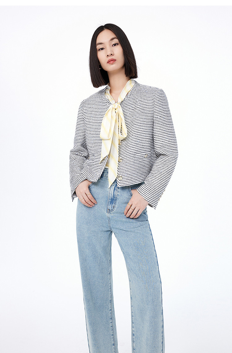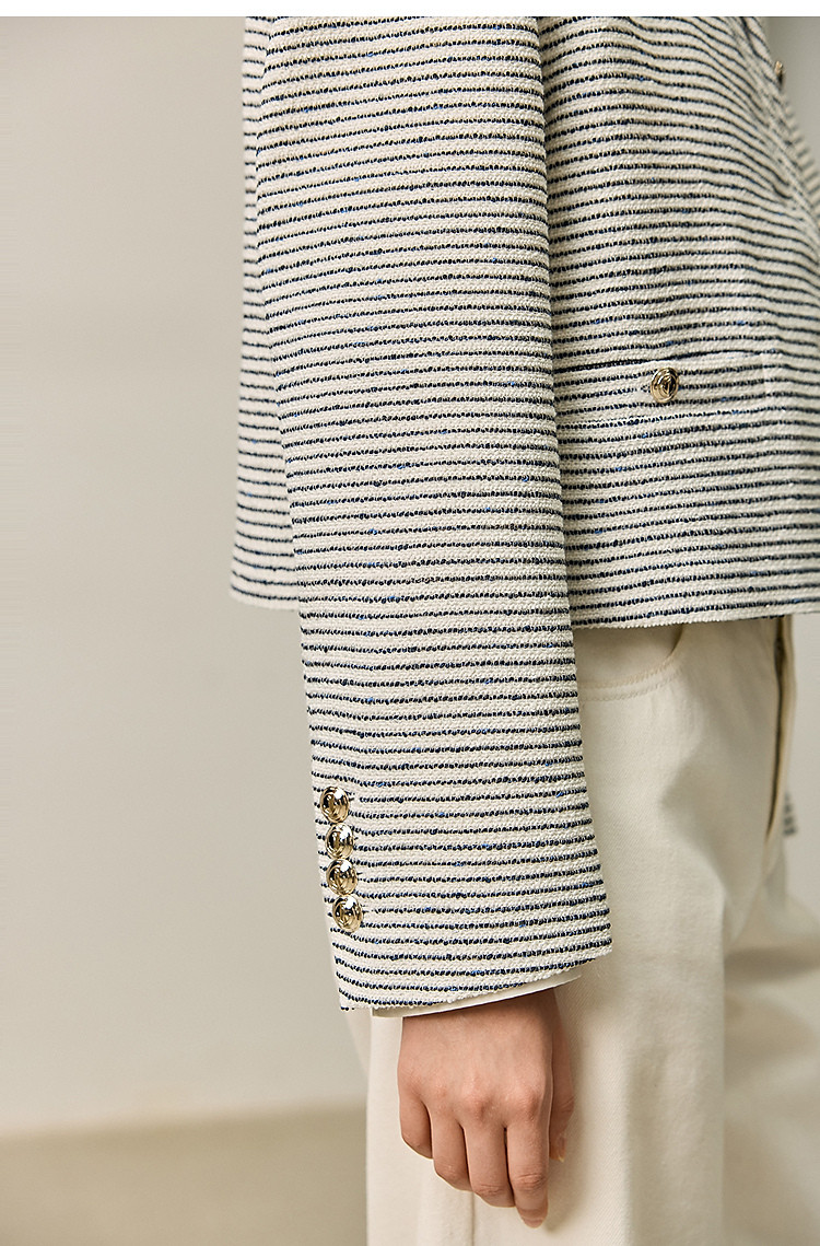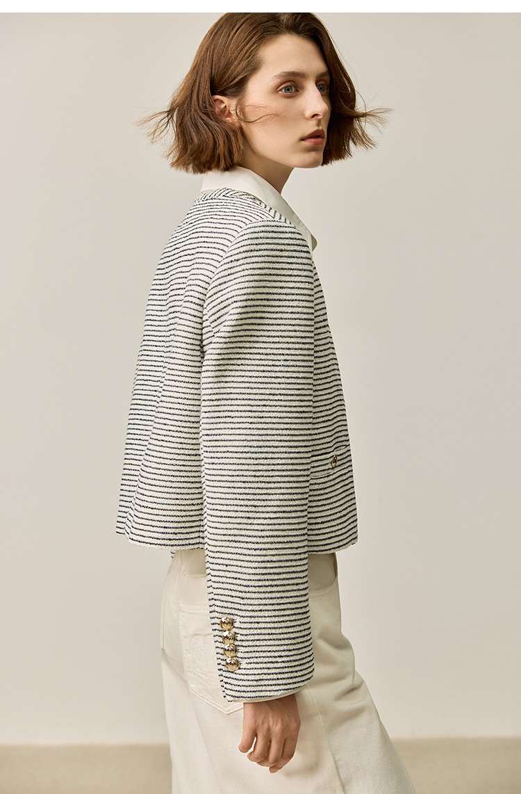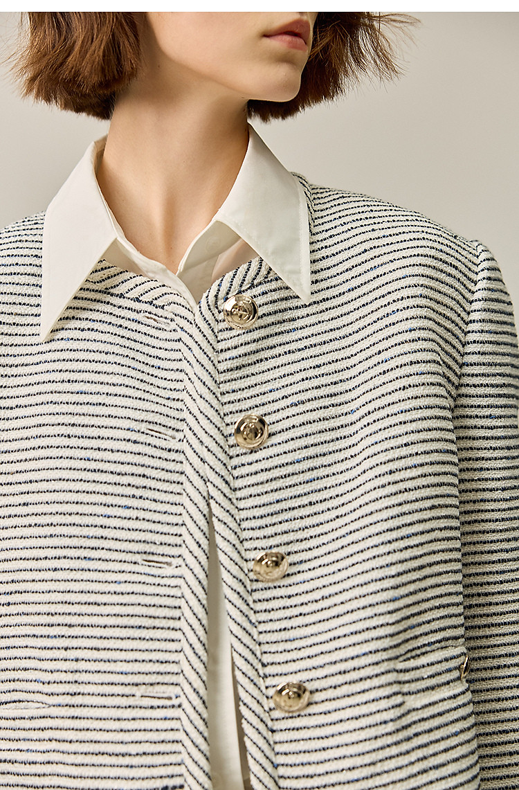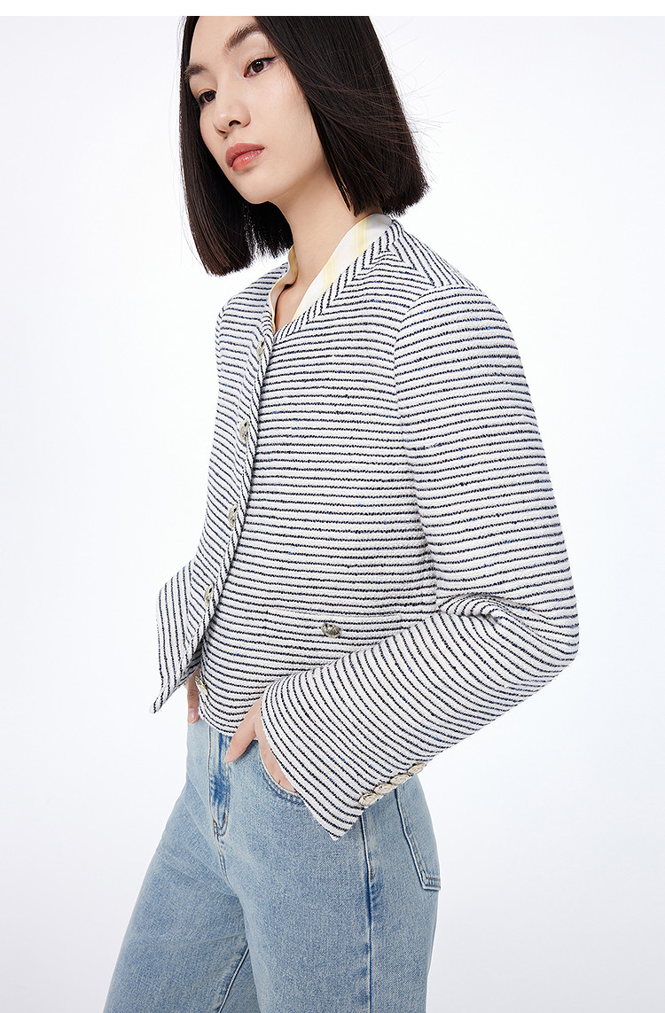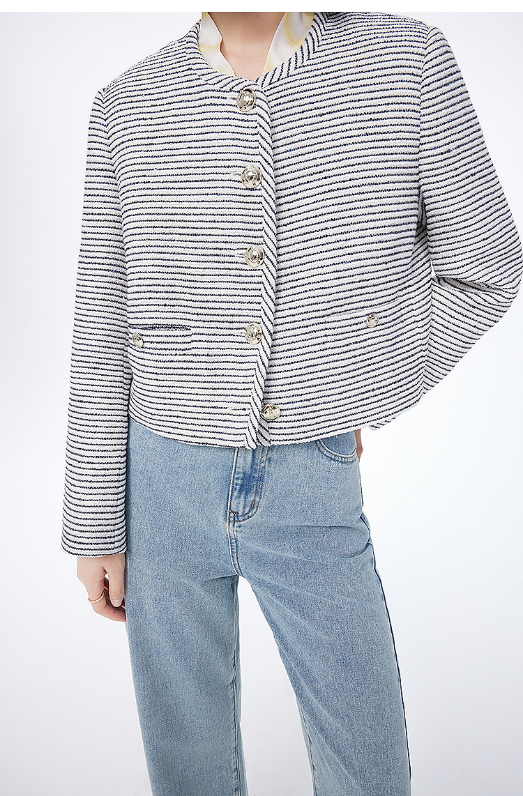 商品名称:春季外套女时尚小香风复古条纹都市通勤款短外套小个子女 172827