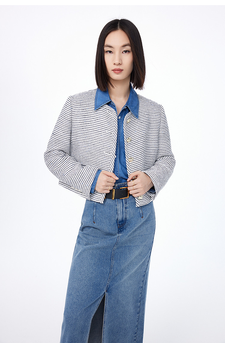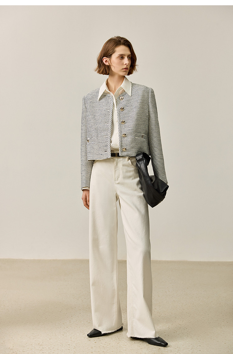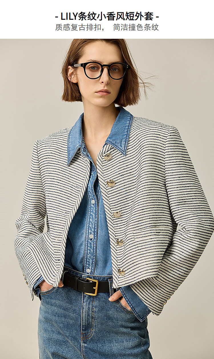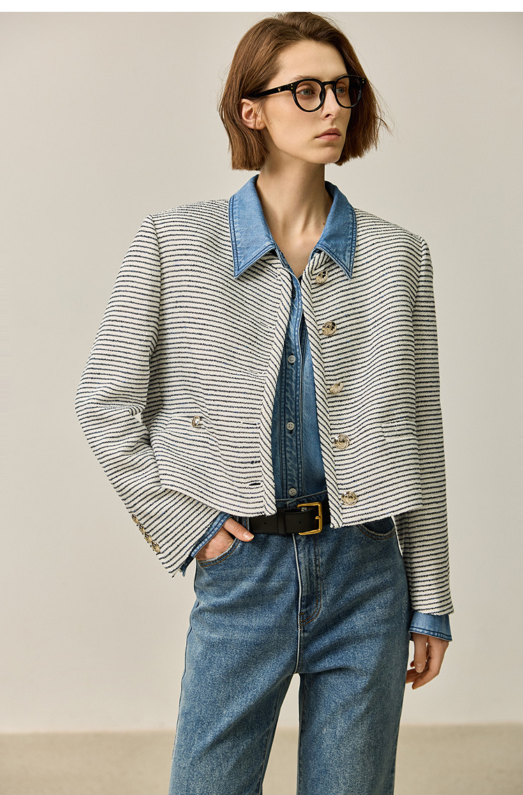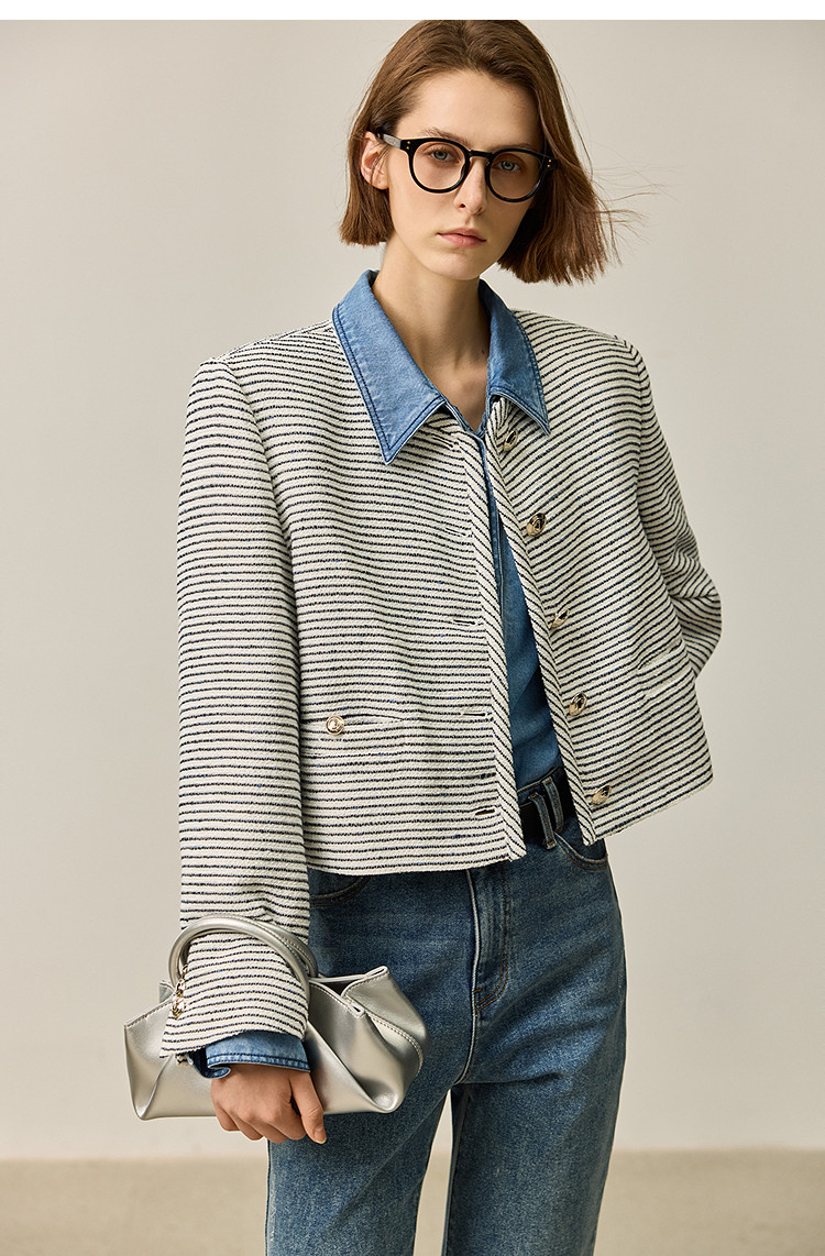商品名称:春季外套女时尚小香风复古条纹都市通勤款短外套小个子女 172827