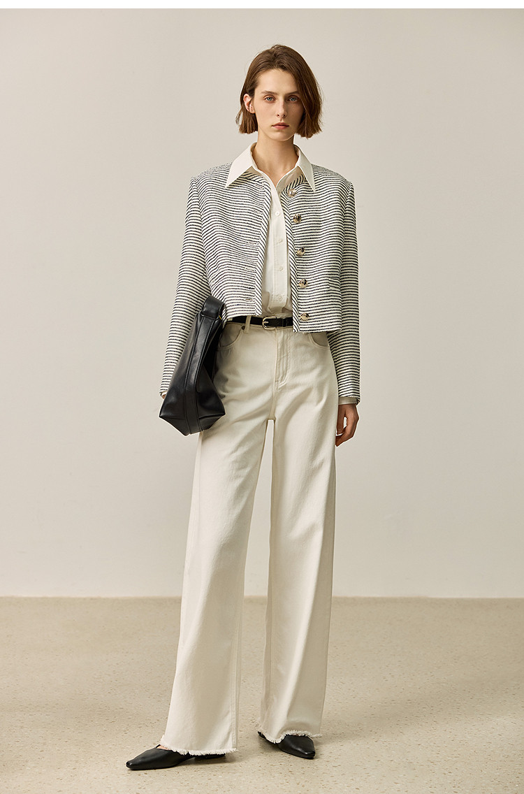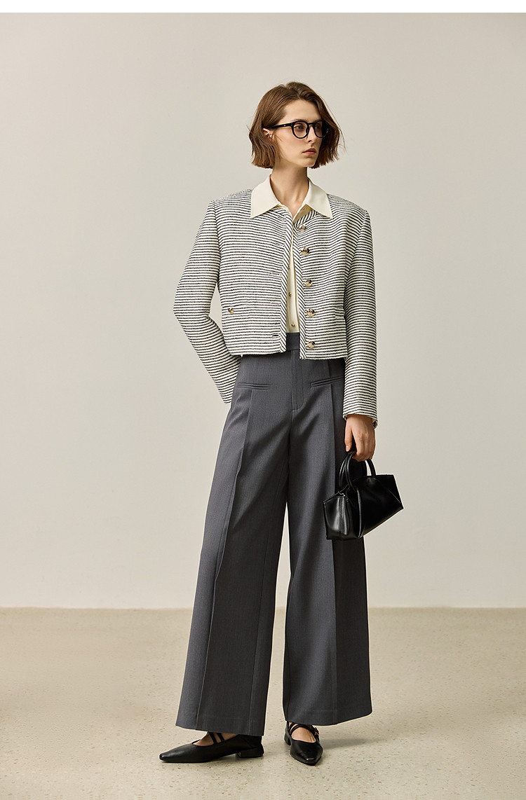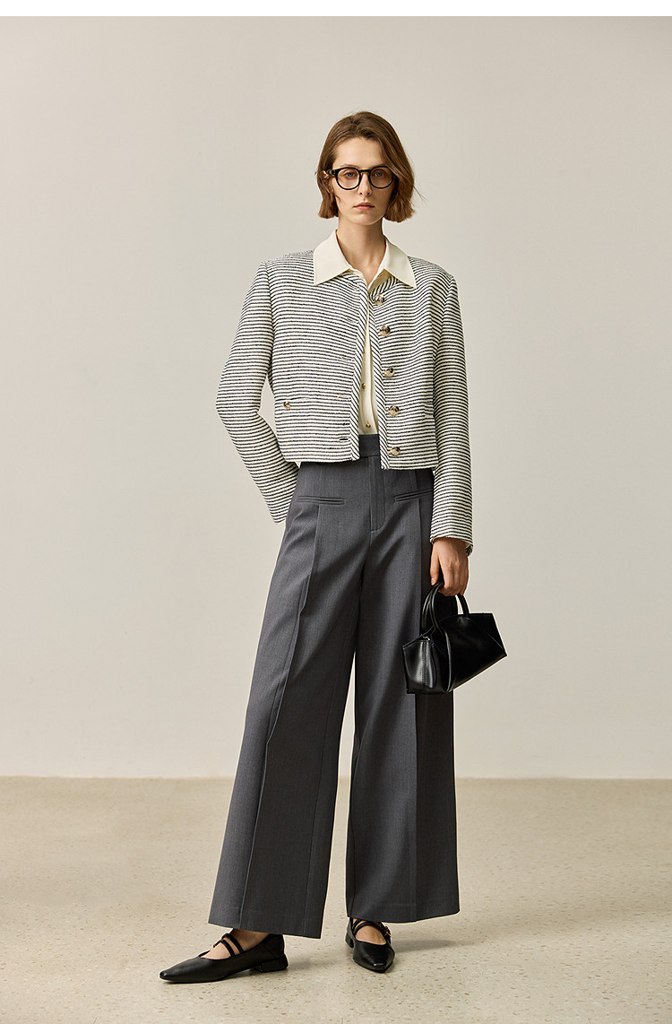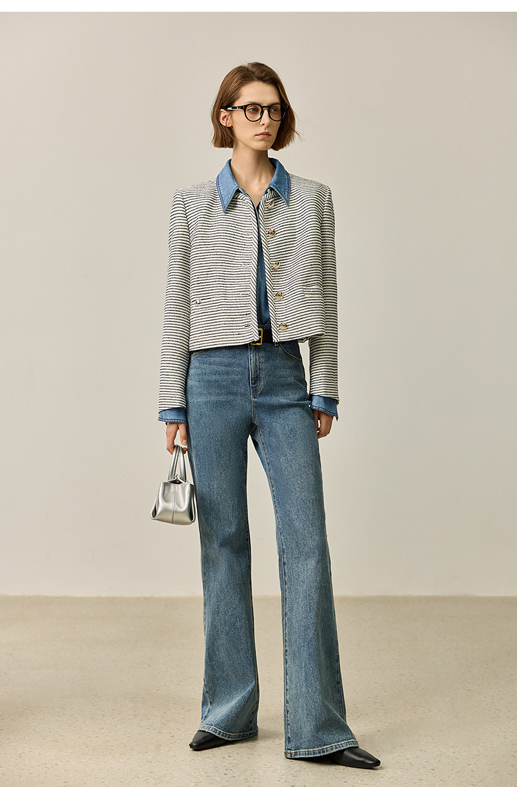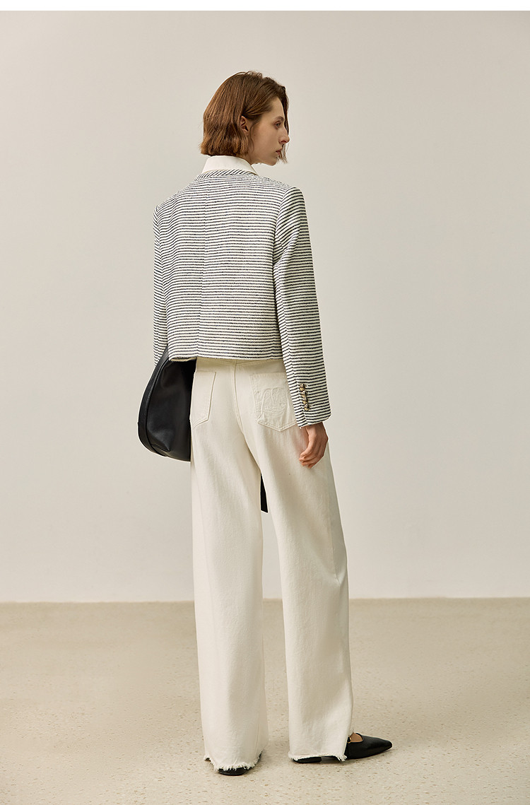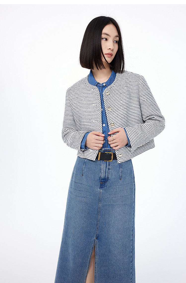 商品名称:春季外套女时尚小香风复古条纹都市通勤款短外套小个子女 172827