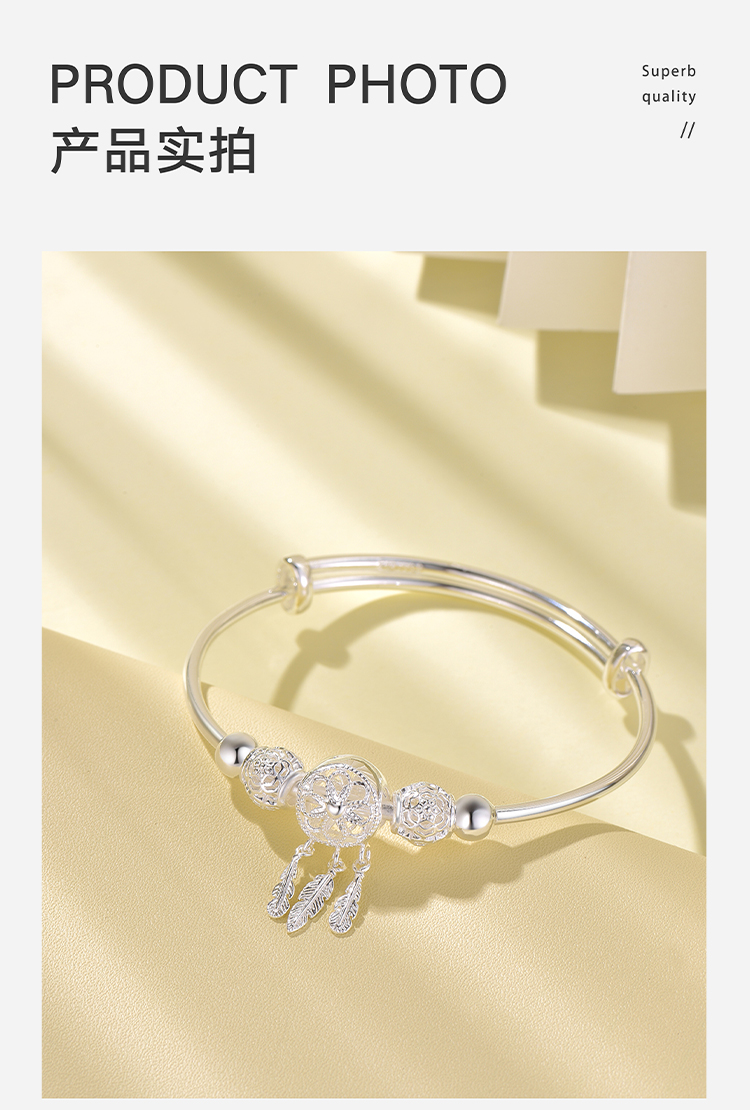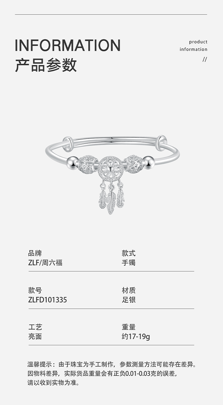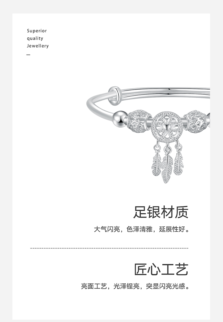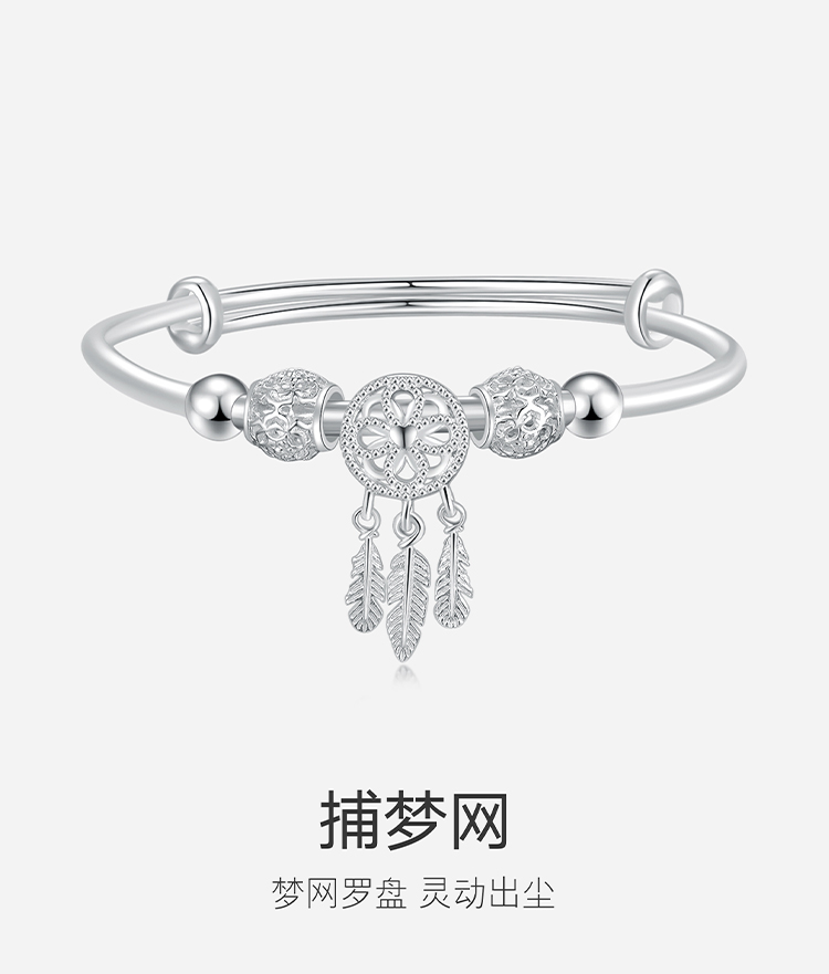 商品名称:周六福足银捕梦网足银手镯ZLFD101335