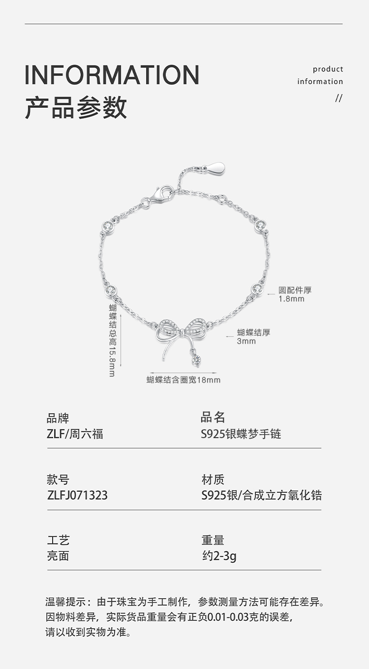商品名称:周六福S925银蝶梦手链ZLFJ071323