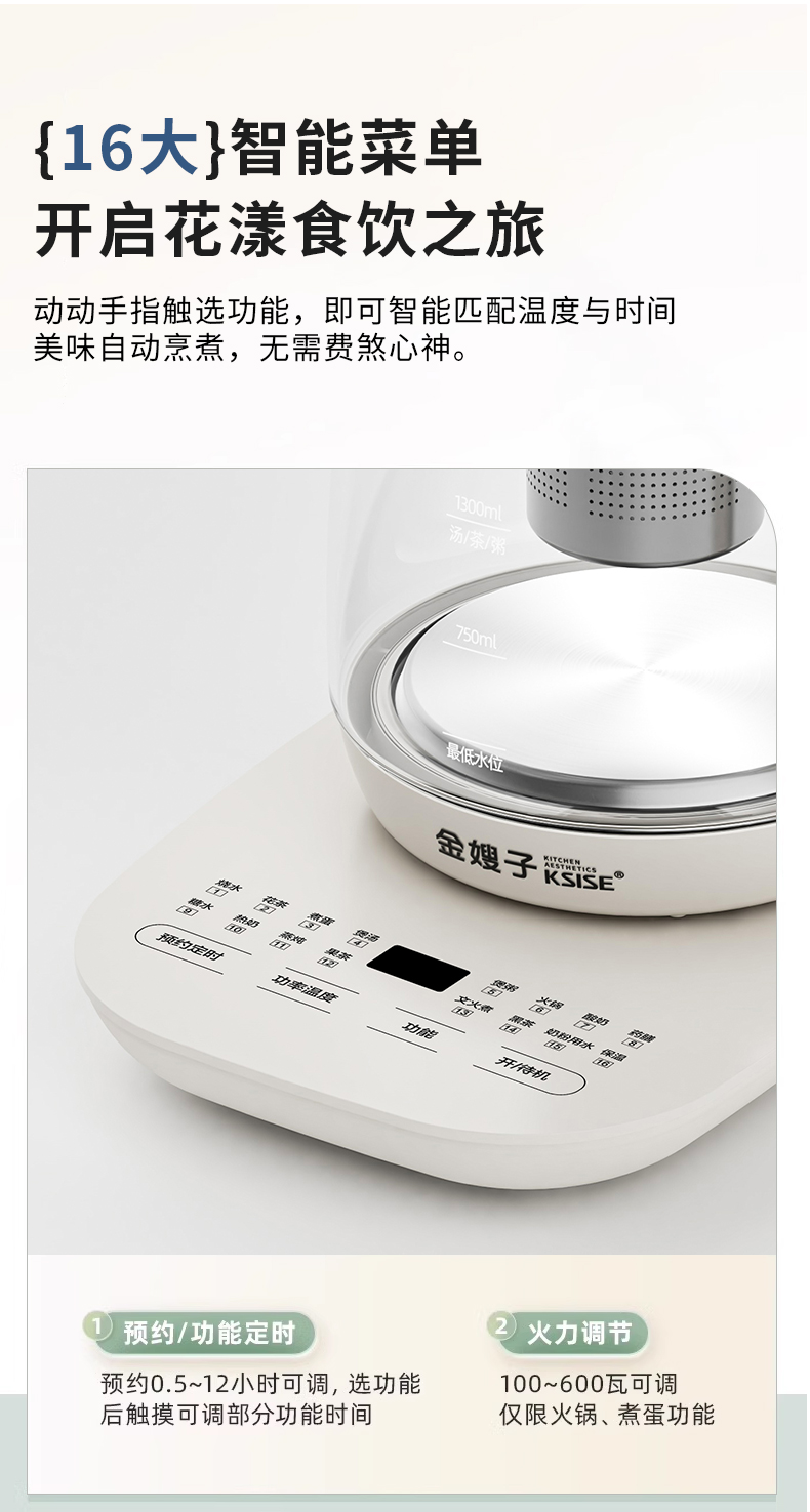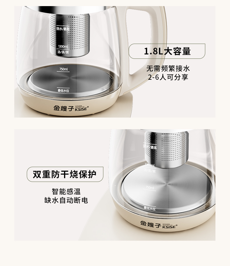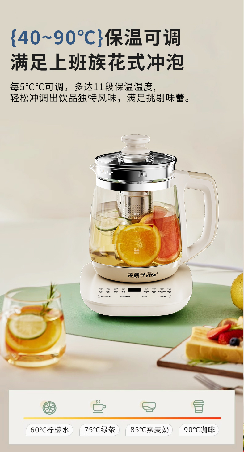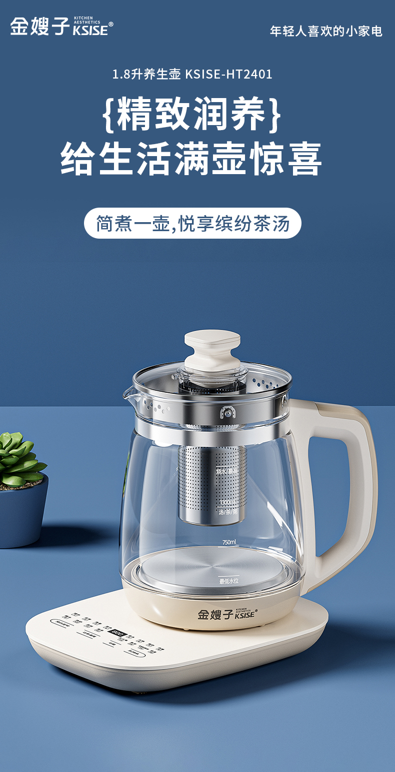 KSISE/金嫂子迪菲乐系列1.8升养生壶KSISE-HT2401