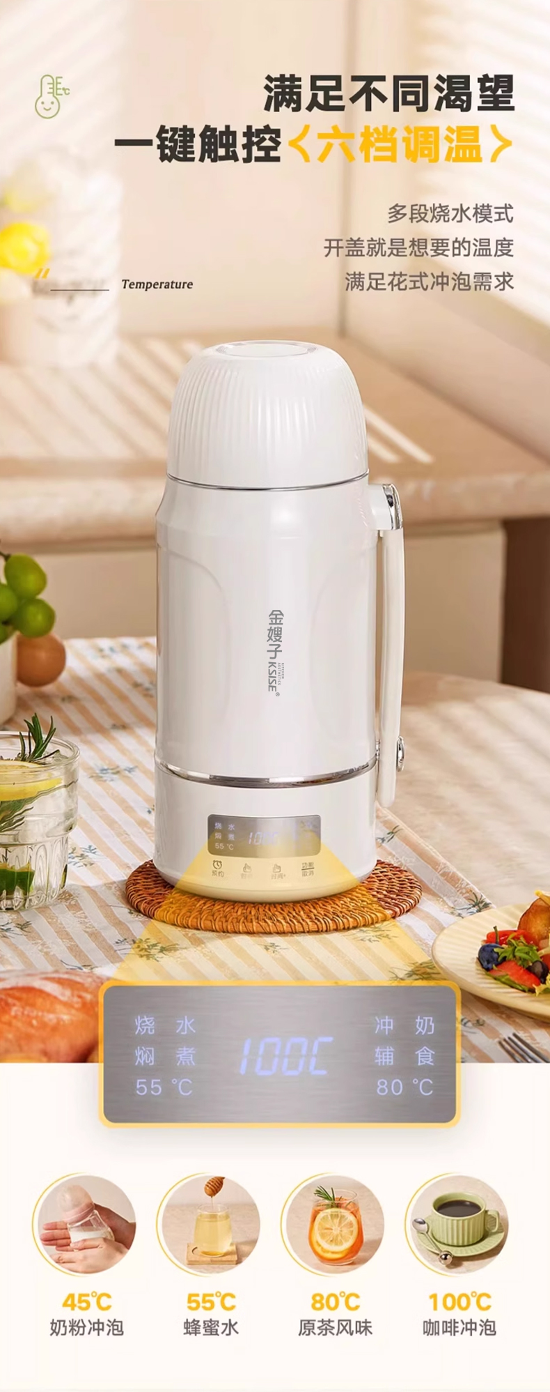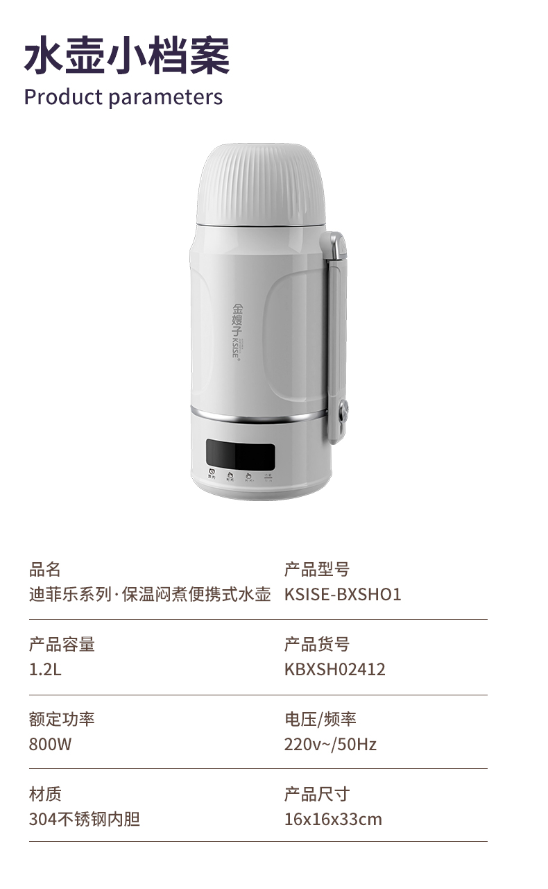 商品名称:KSISE/金嫂子迪菲乐系列1.2升保温闷煮便携式水壶KSISE-BXSH01