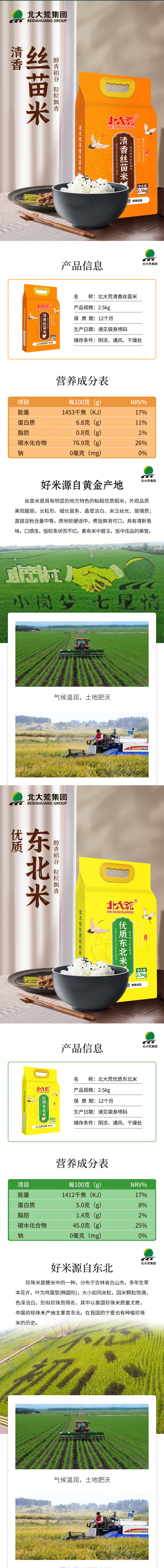 商品名称:北大荒优质东北大米+清香丝苗米组合2.5kg*2袋
