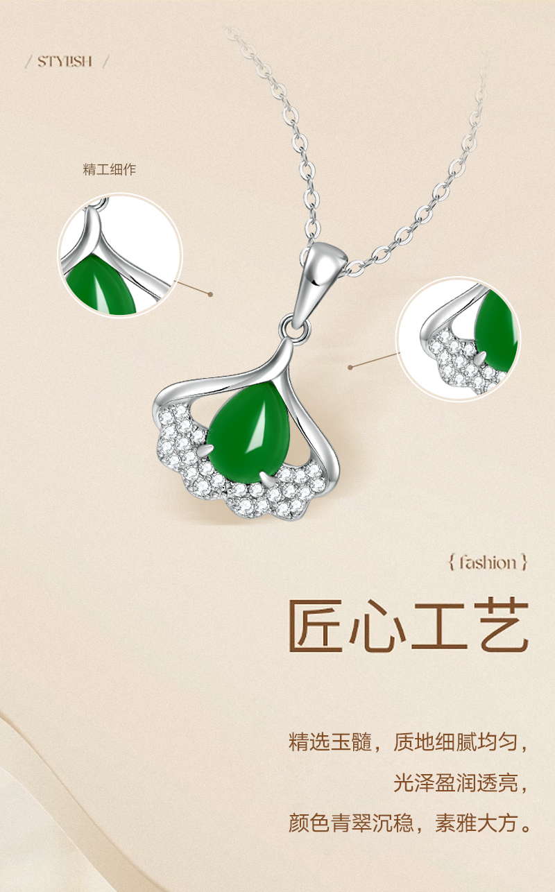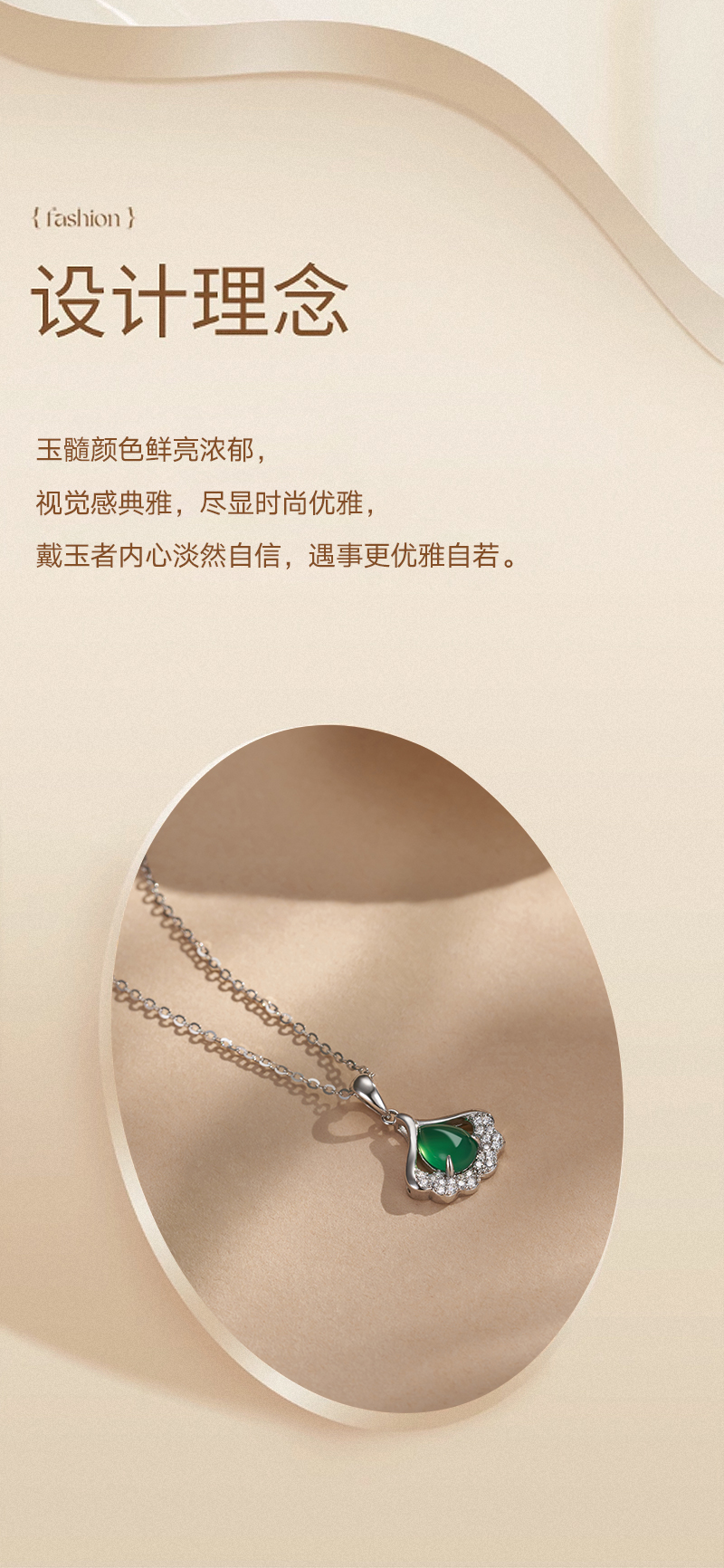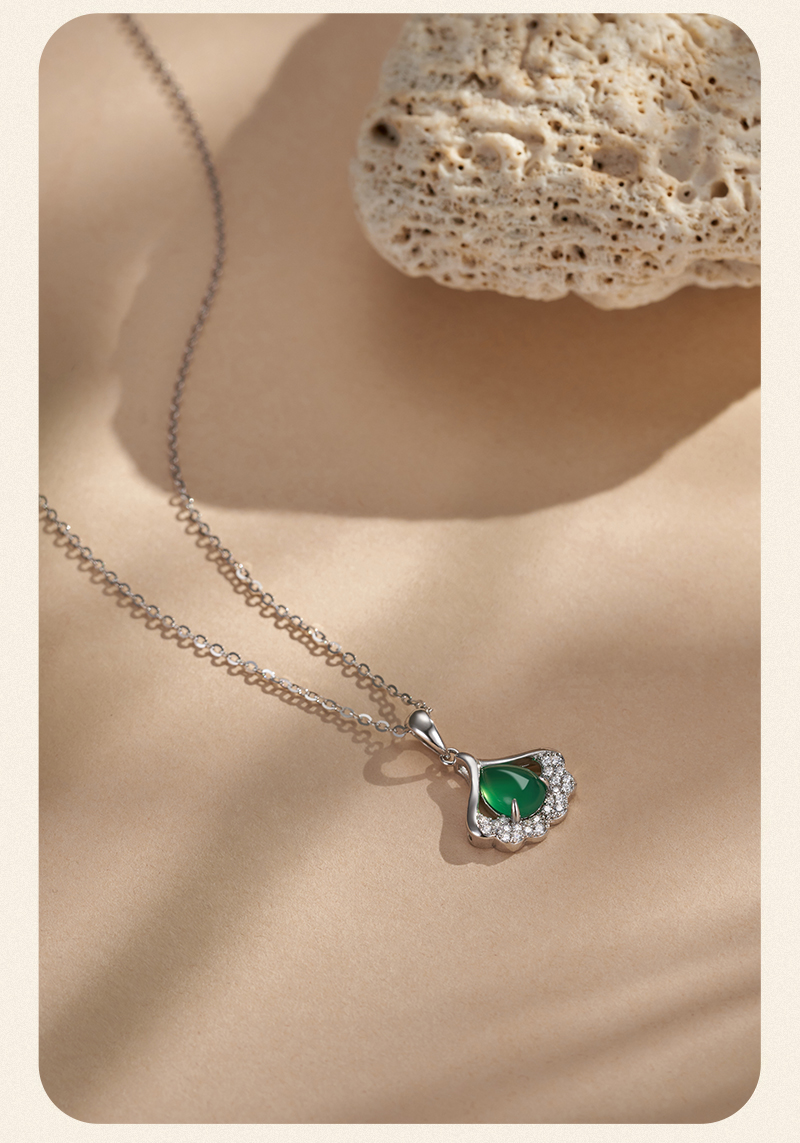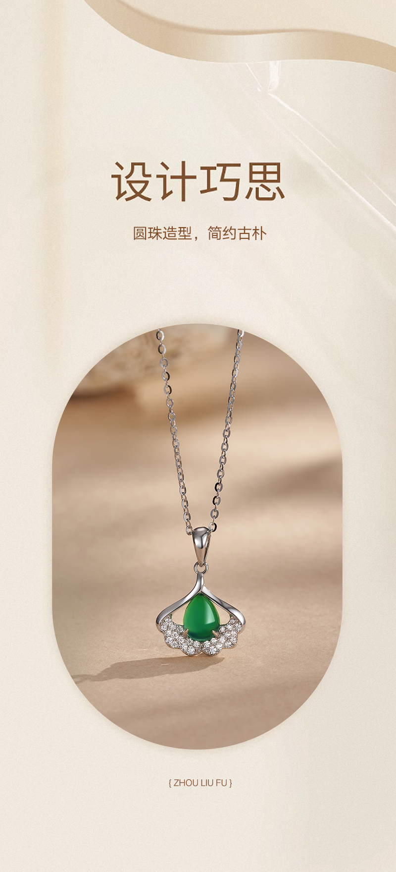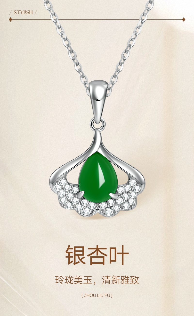 周六福S925银碧玉银杏叶项链ZLFJ041698