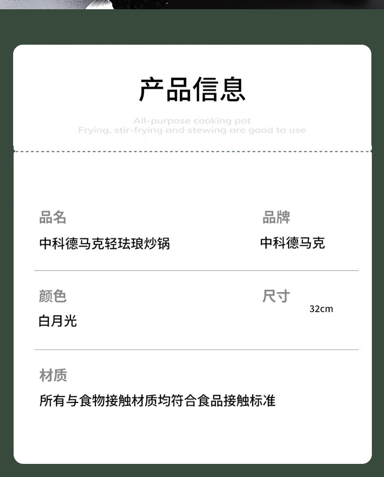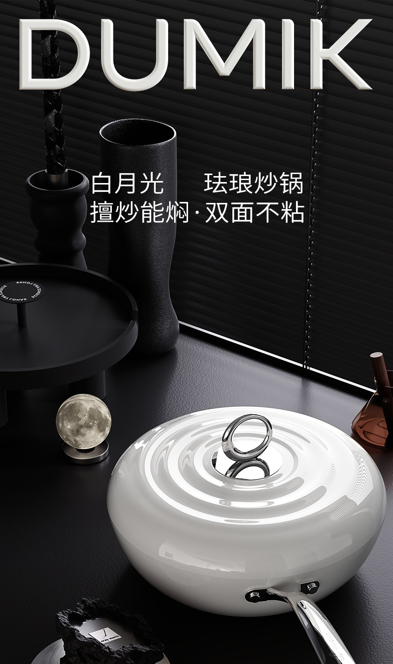 商品名称:【顺丰配送】DUMIK/中科德马克白月光系列32cm轻珐琅炒锅-白月光