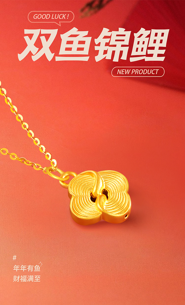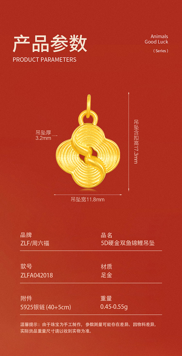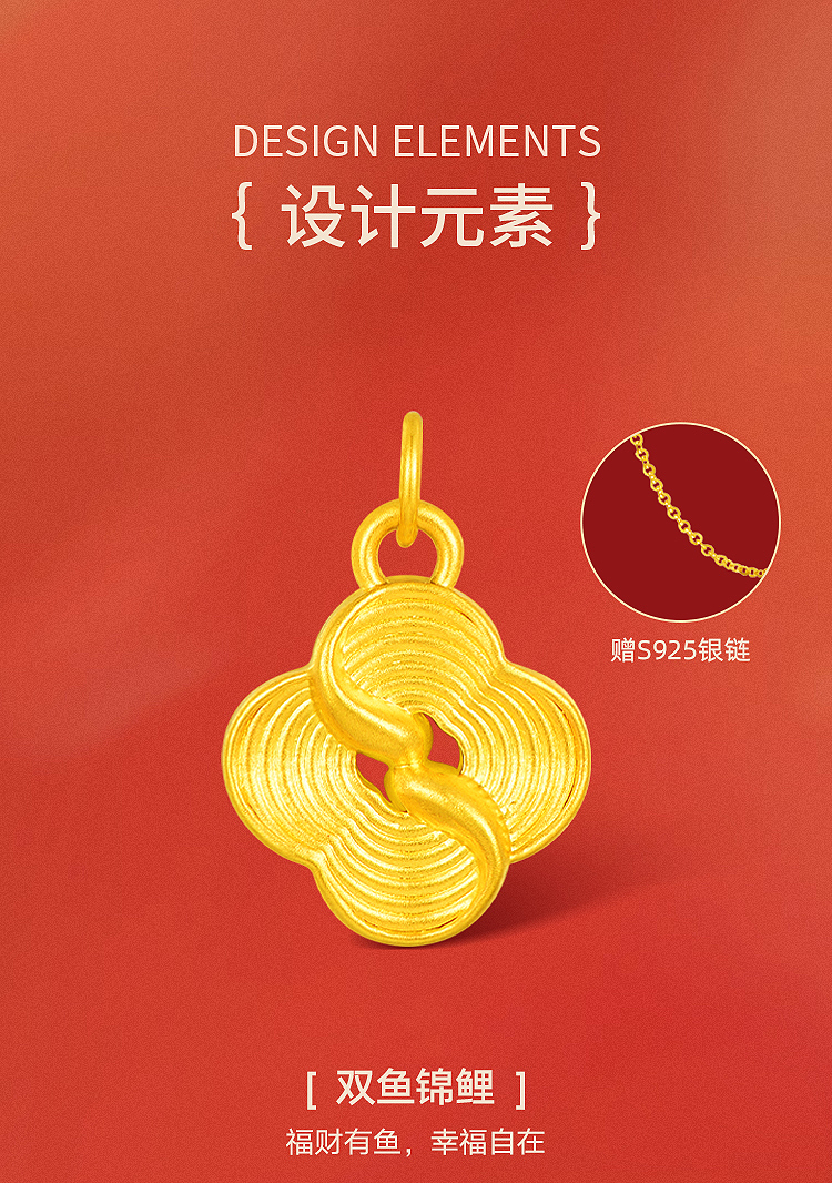 商品名称:周六福5D硬金双鱼锦鲤吊坠-送S925银链ZLFA042018