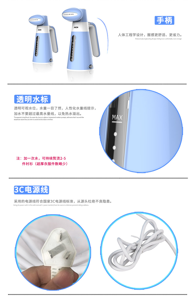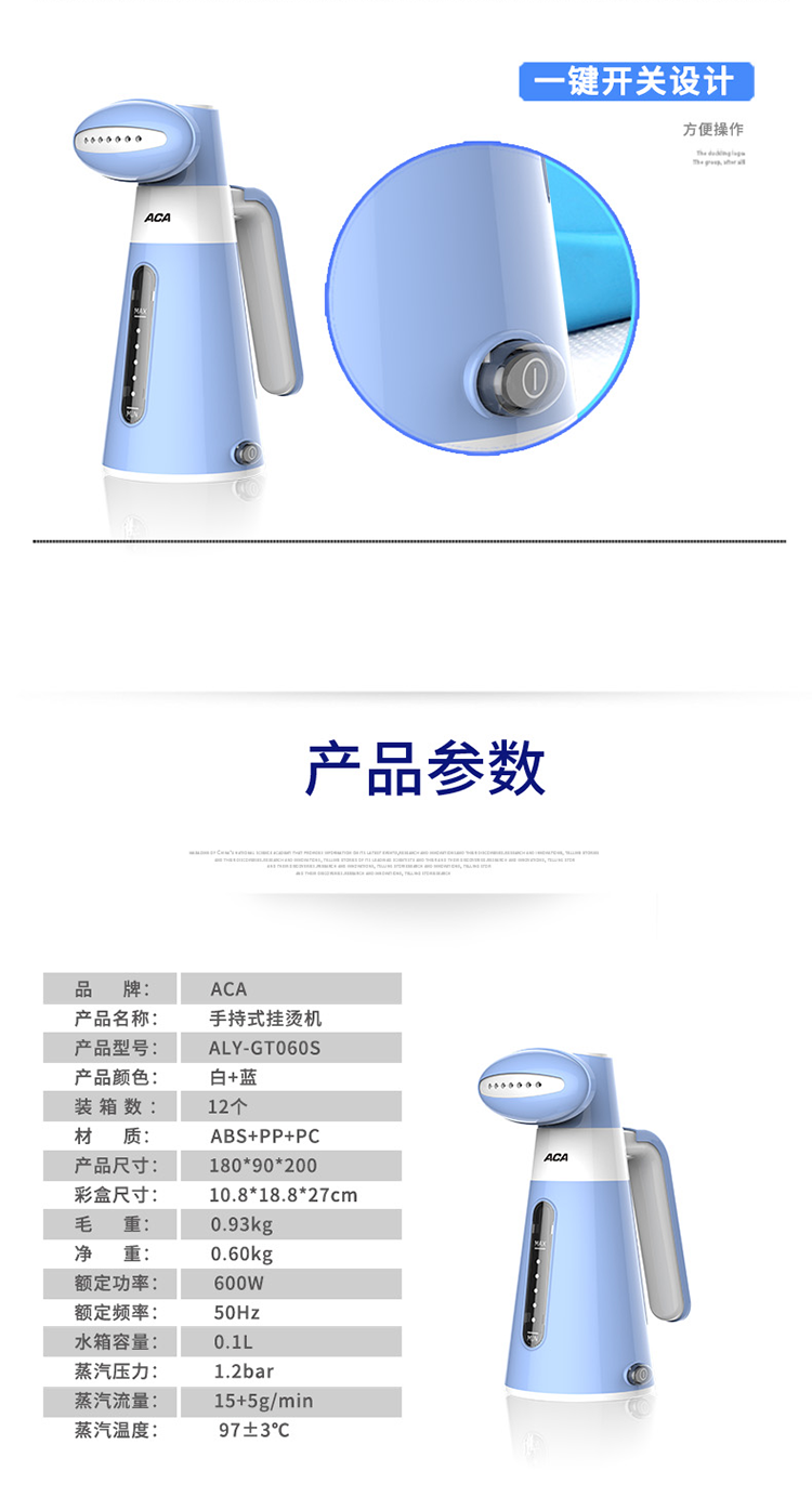 商品名称:ACA/北美电器便携挂烫机ALY-GT060S