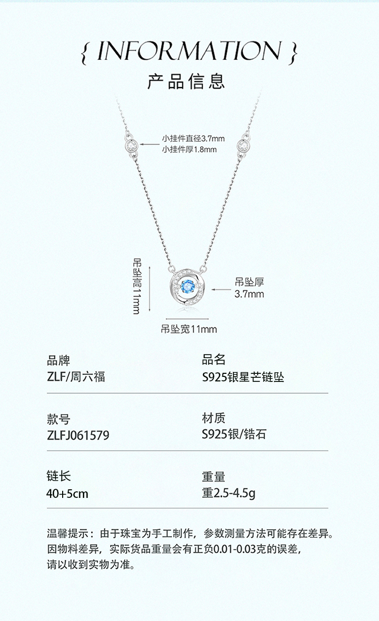 商品名称:周六福S925银星芒项链ZLFJ061579