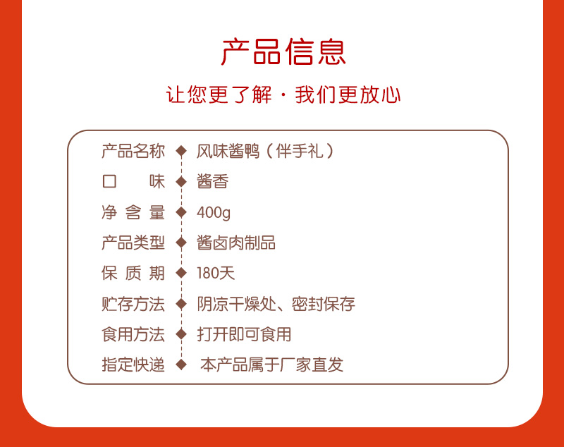 商品名称:煌上煌风味酱鸭伴手礼红色礼盒装400g