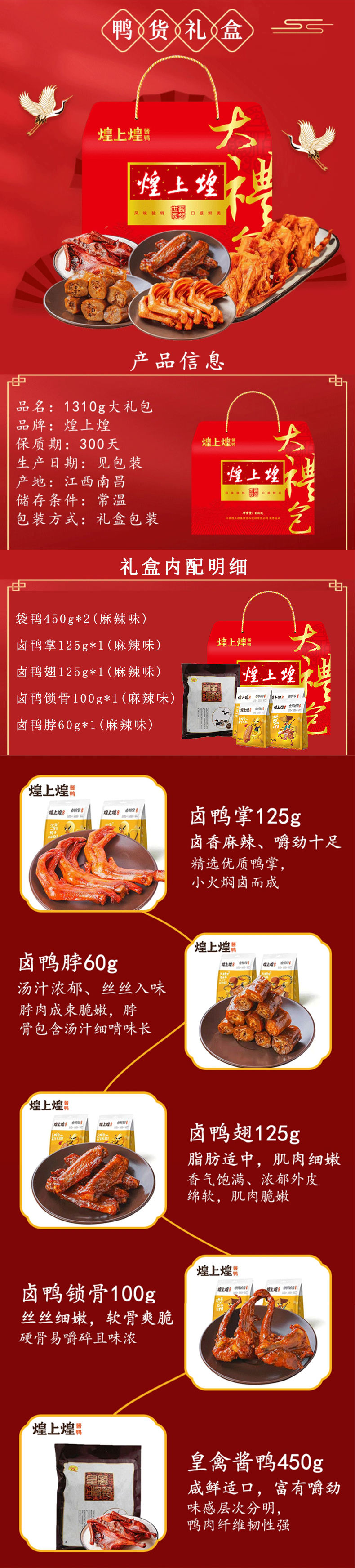 商品名称:煌上煌鸭货大礼包1310g