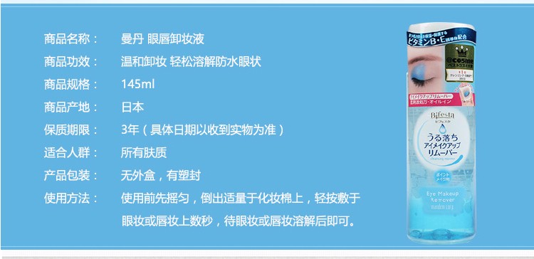 商品名称:MANDOM/曼丹 BIFESTA眼唇卸妆液 145ML