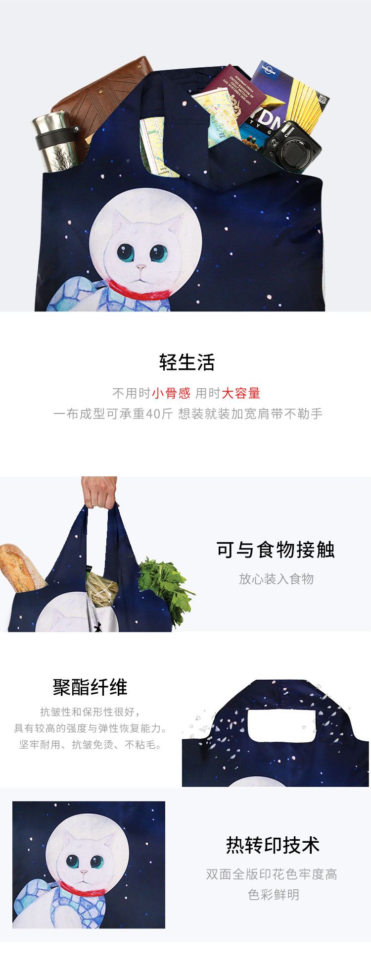 商品名称:Envirosax春卷包环保袋 太空猫 高颜值 大容量可折叠 出游必备