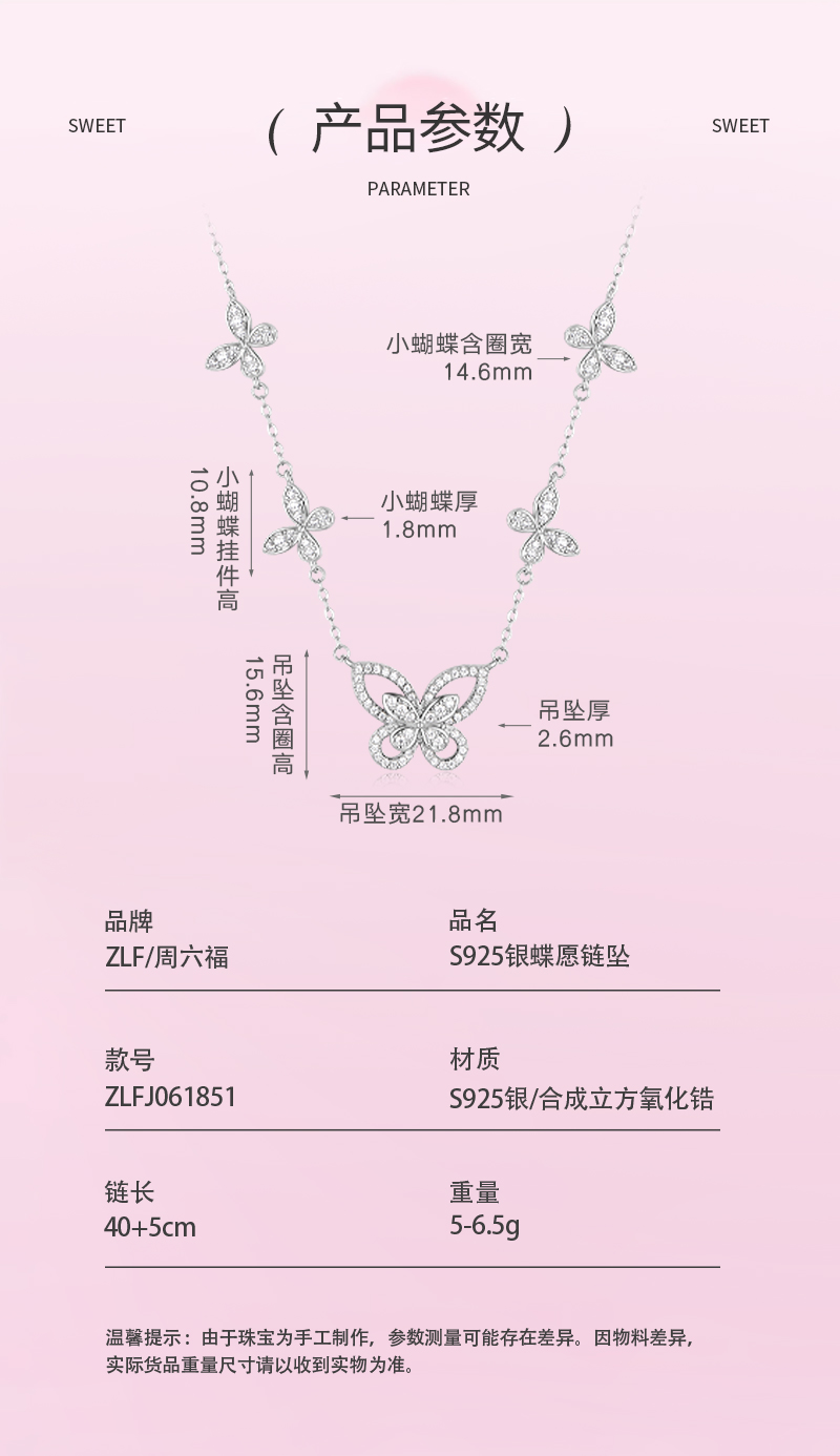 商品名称:周六福S925银蝶愿项链ZLFJ061851