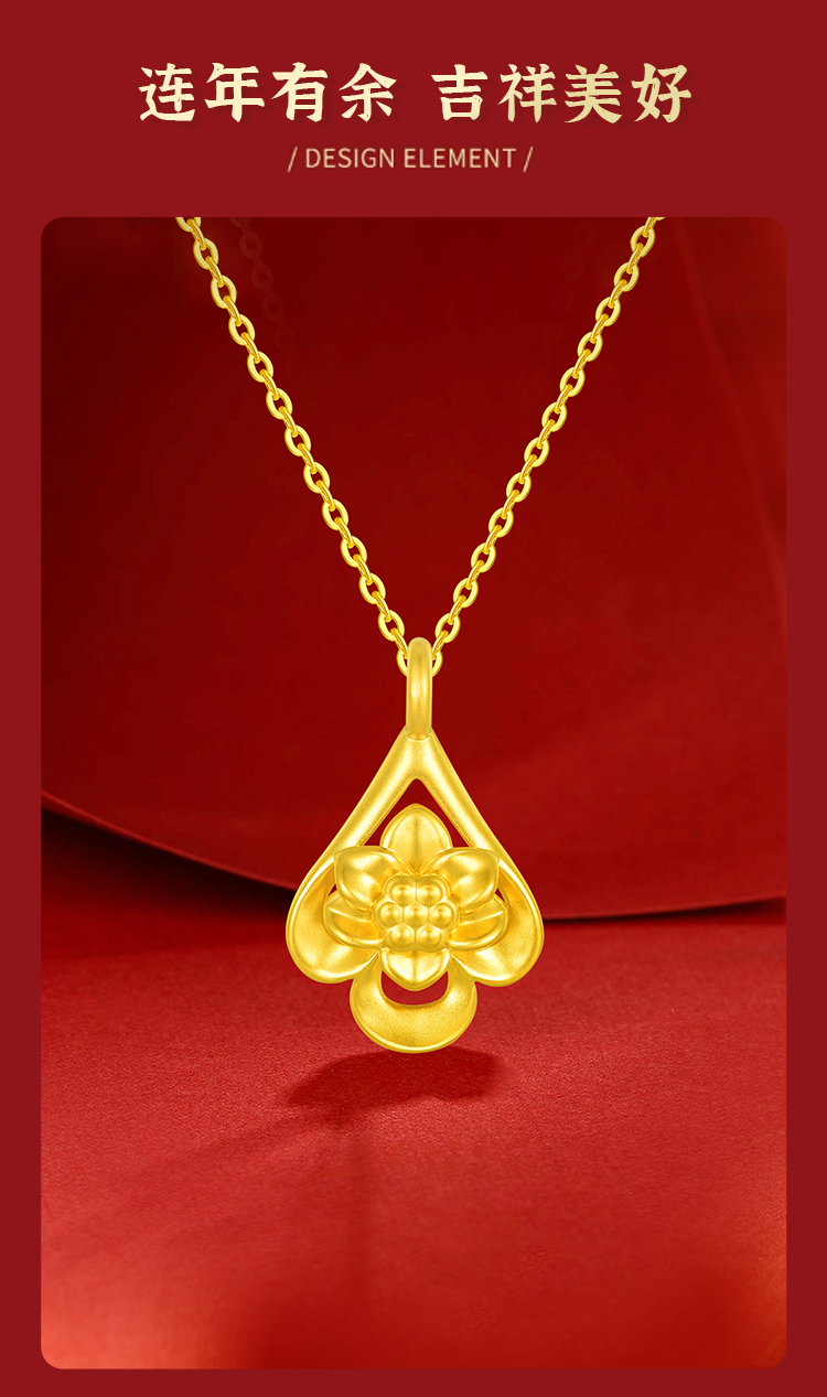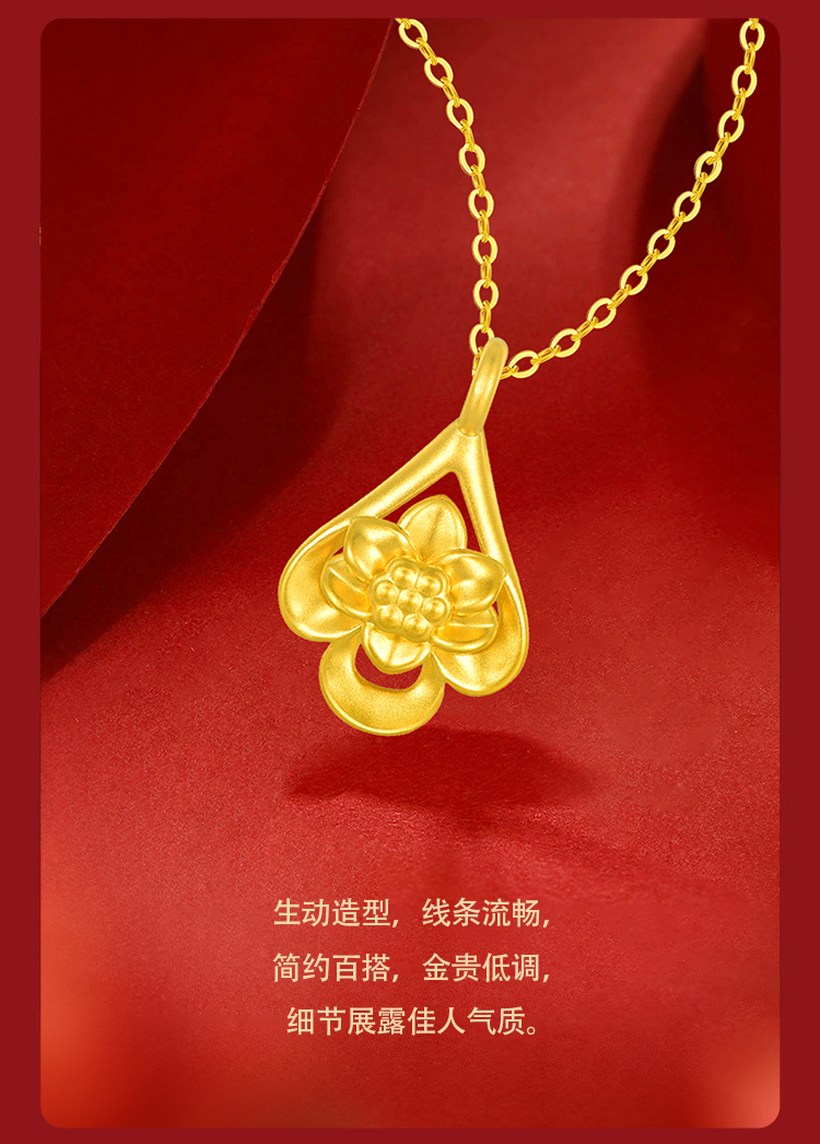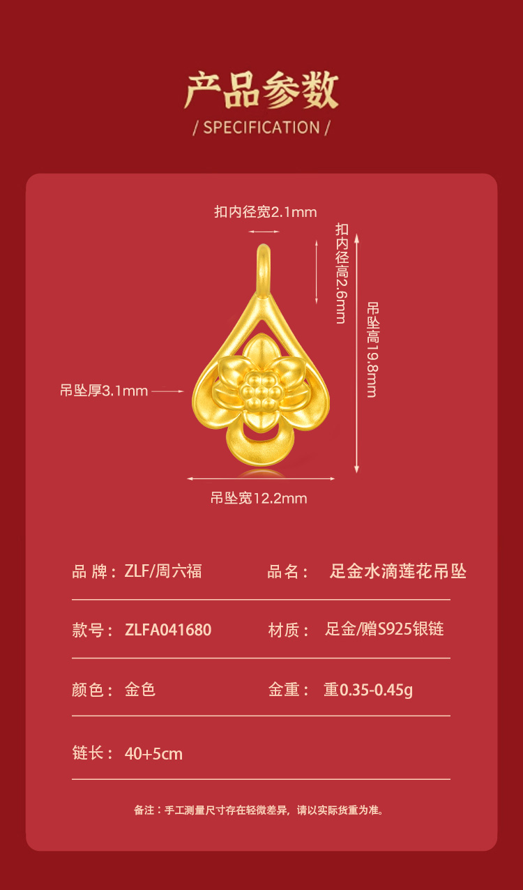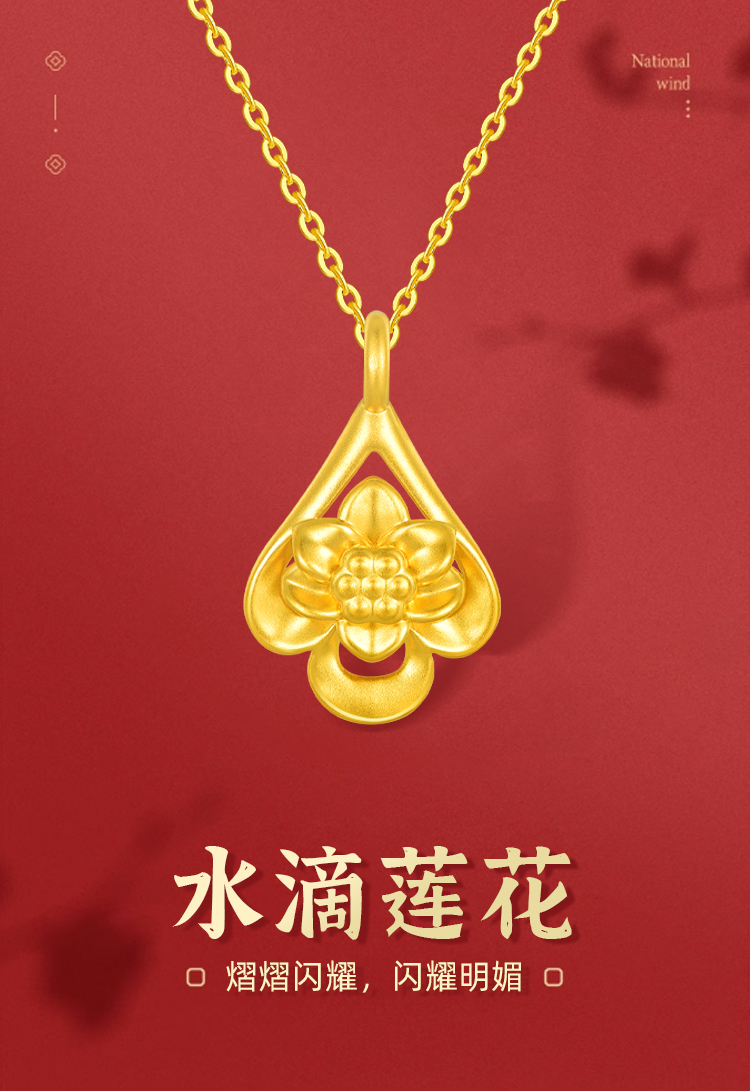 商品名称:周六福足金水滴莲花吊坠-送S925银链ZLFA041680