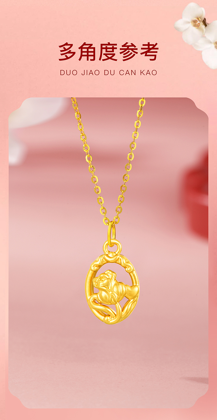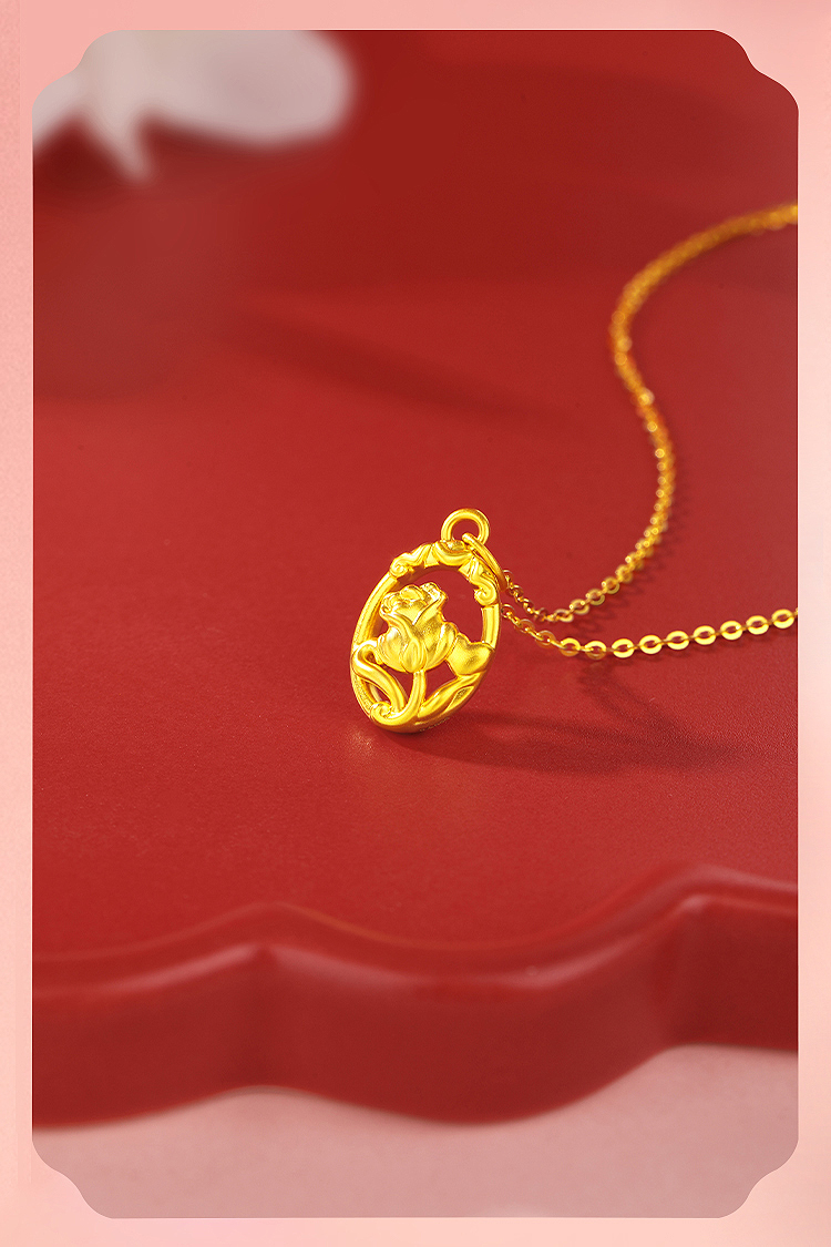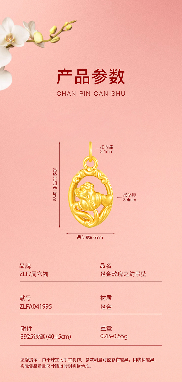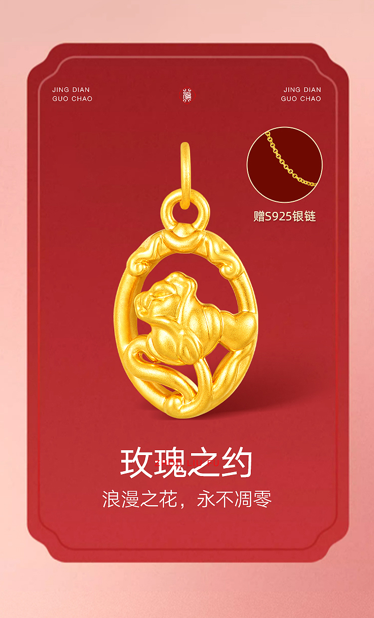 商品名称:周六福玫瑰之约5D硬金吊坠--送S925银链ZLFA041995