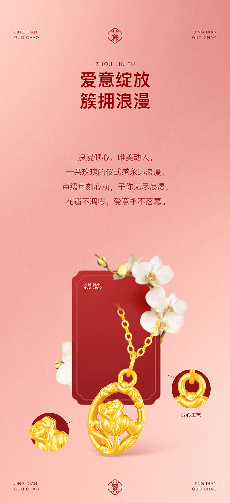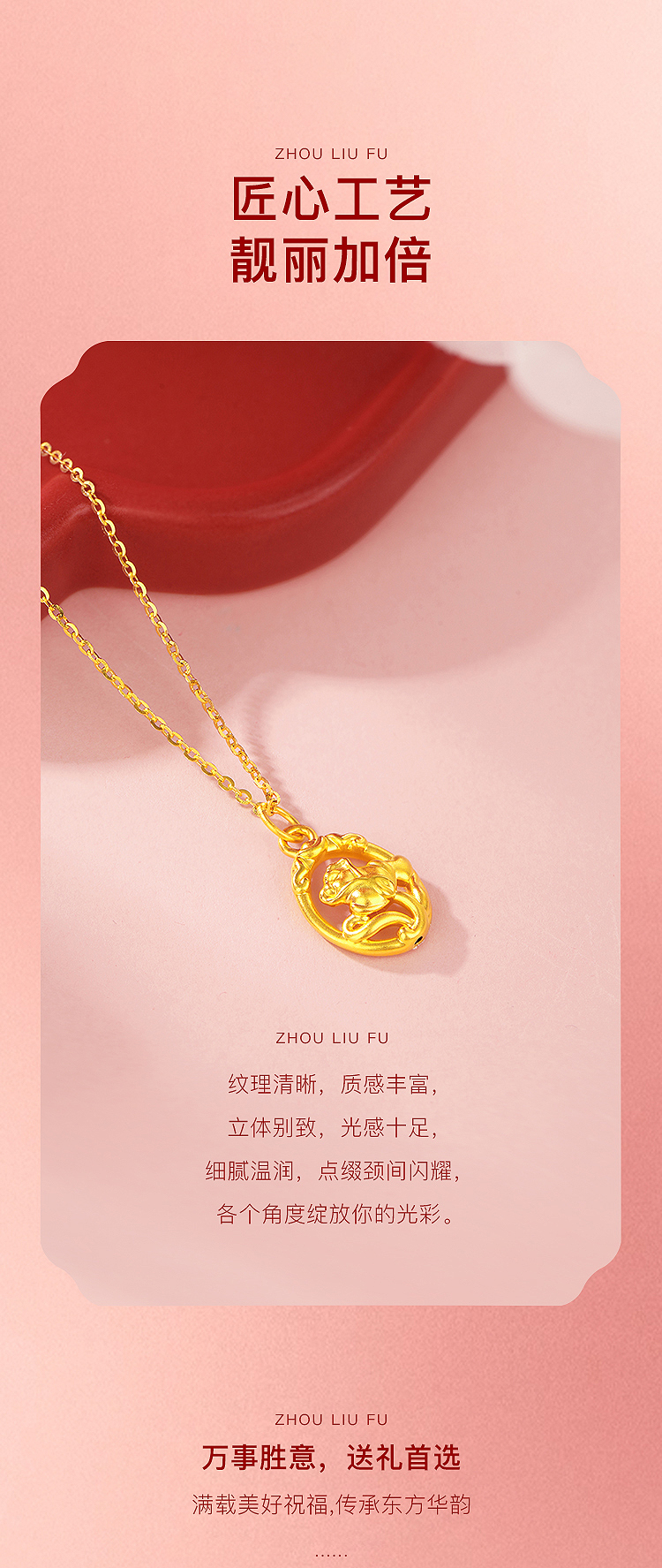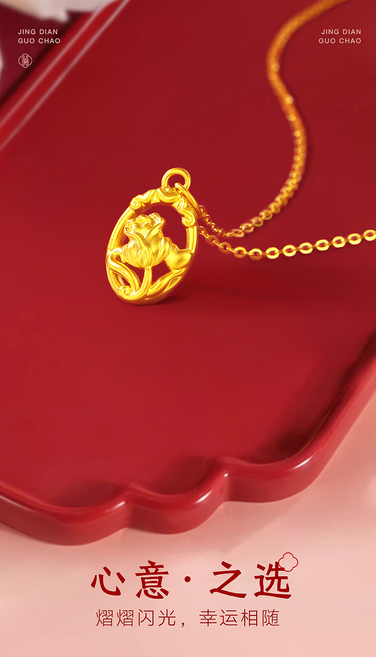 商品名称:周六福玫瑰之约5D硬金吊坠--送S925银链ZLFA041995