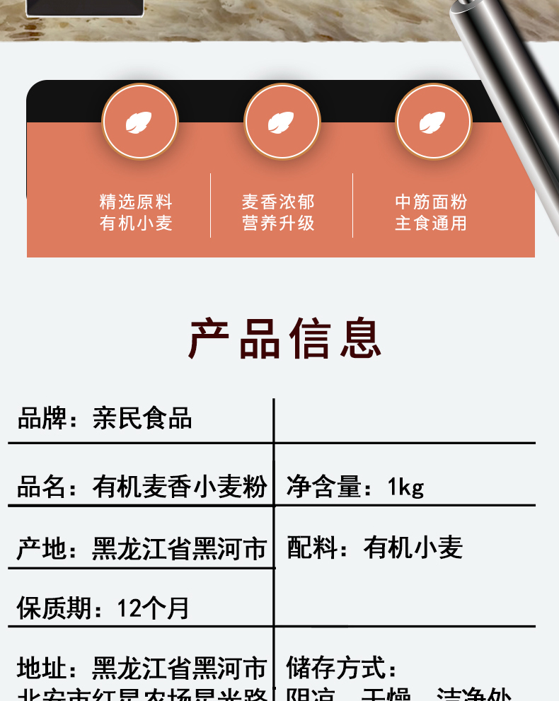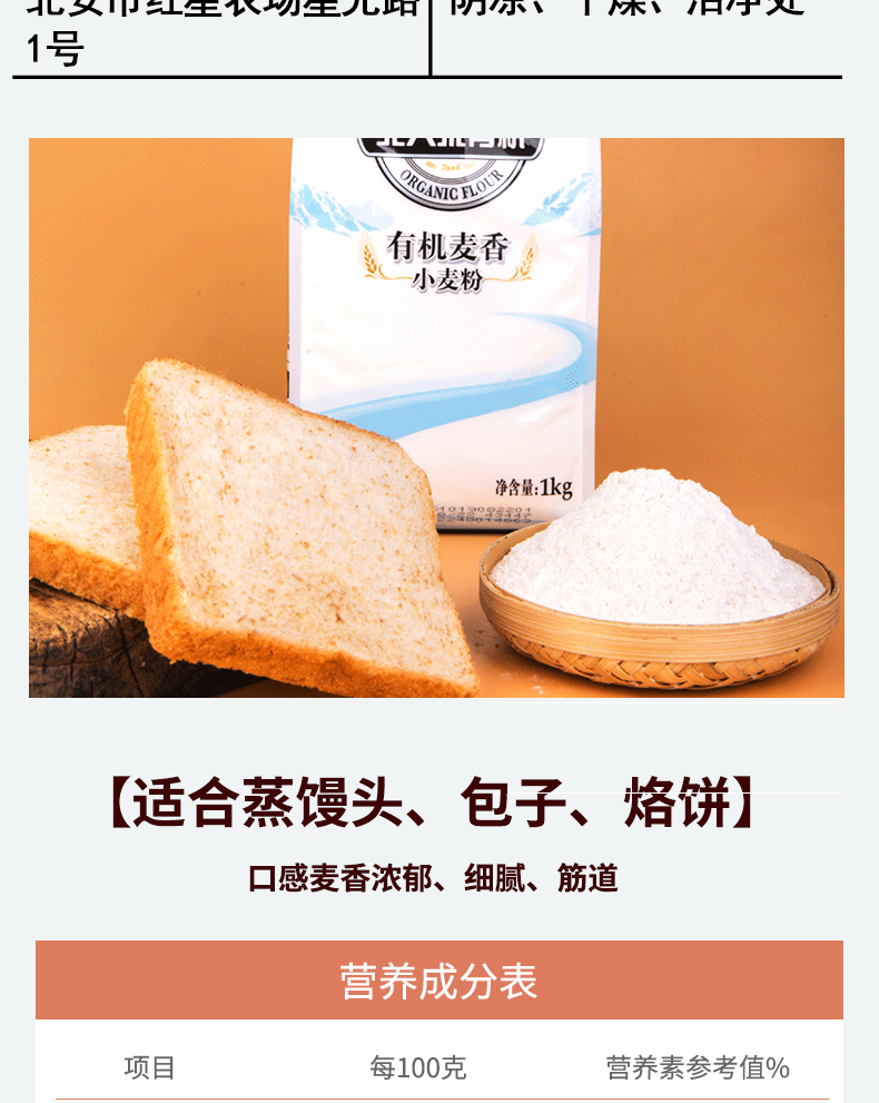 商品名称:亲民食品麦香小麦粉1kg*2袋