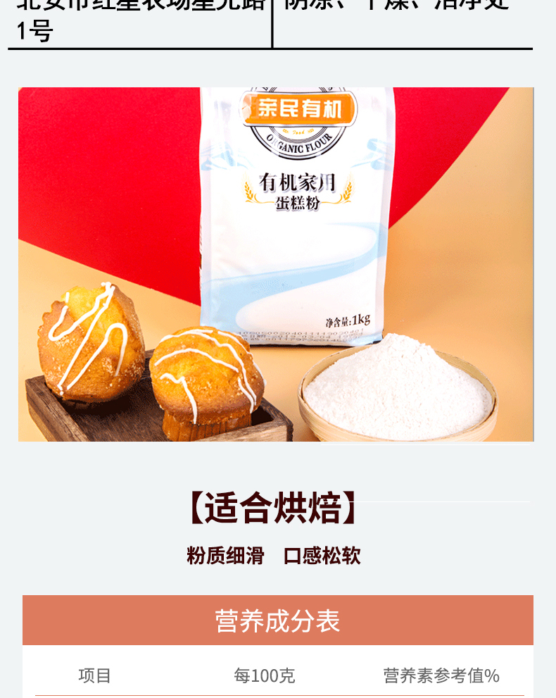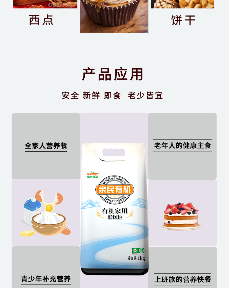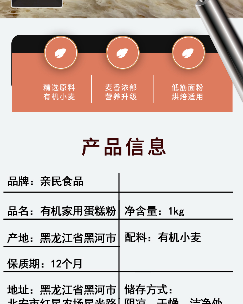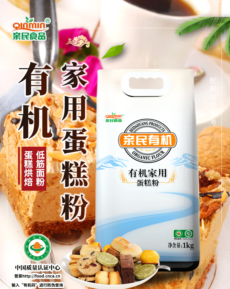 商品名称:亲民食品有机家用蛋糕粉1kg*2袋