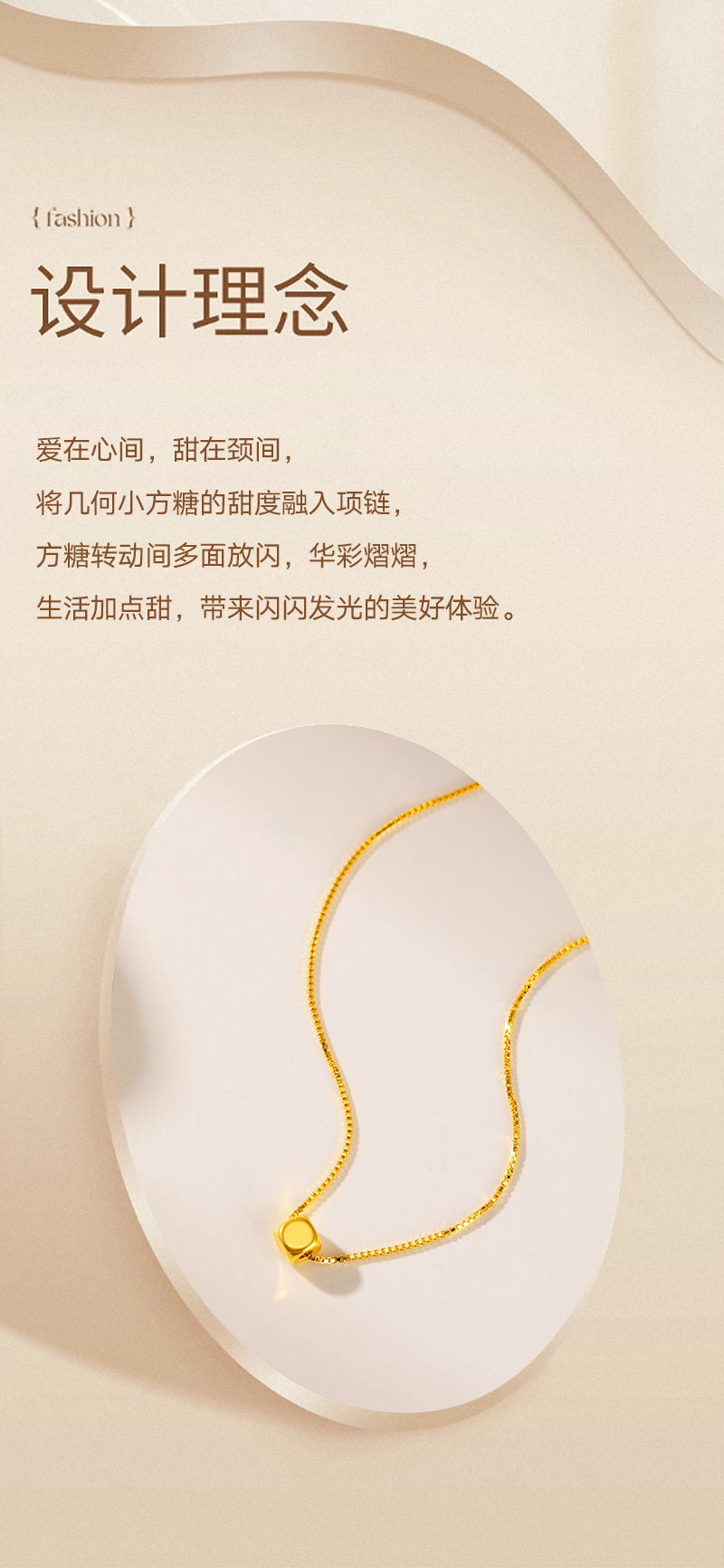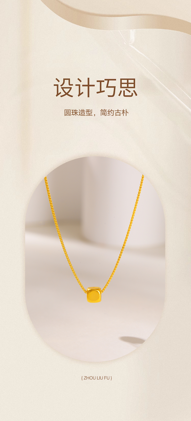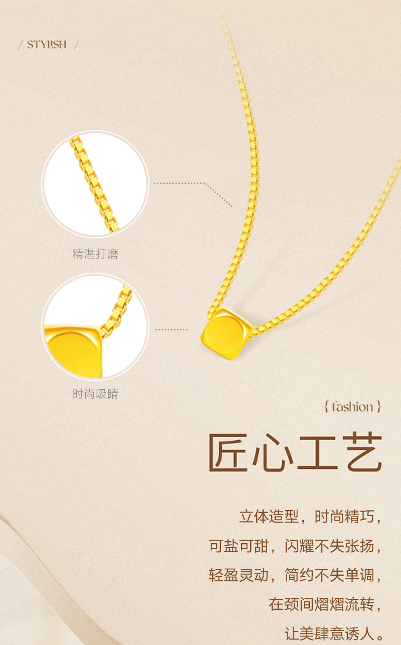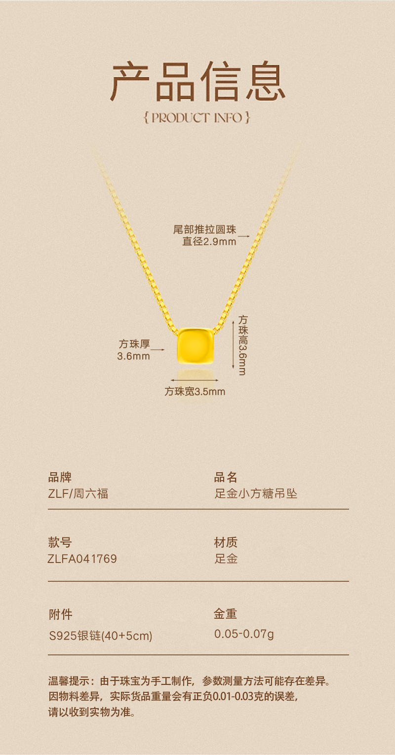 商品名称:周六福足金小方糖吊坠-送S925银链ZLFA041769