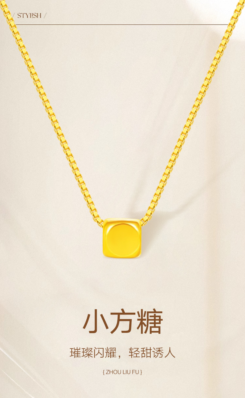 周六福足金小方糖吊坠-送S925银链ZLFA041769