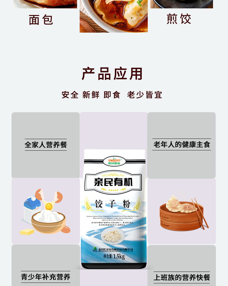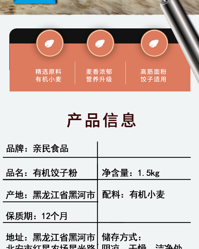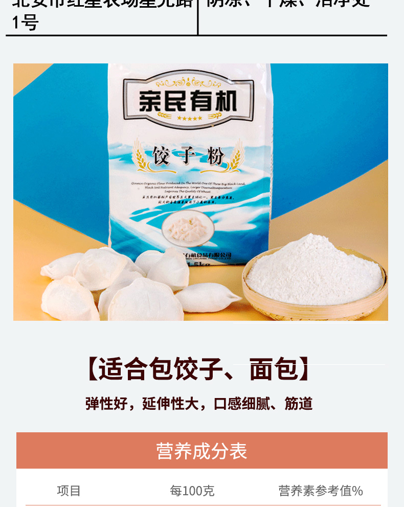 商品名称:亲民食品有机饺子粉1.5kg*2袋
