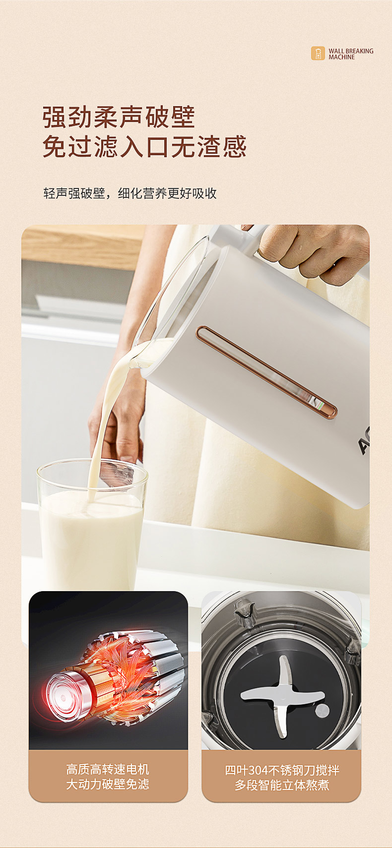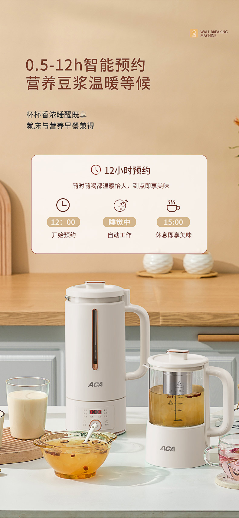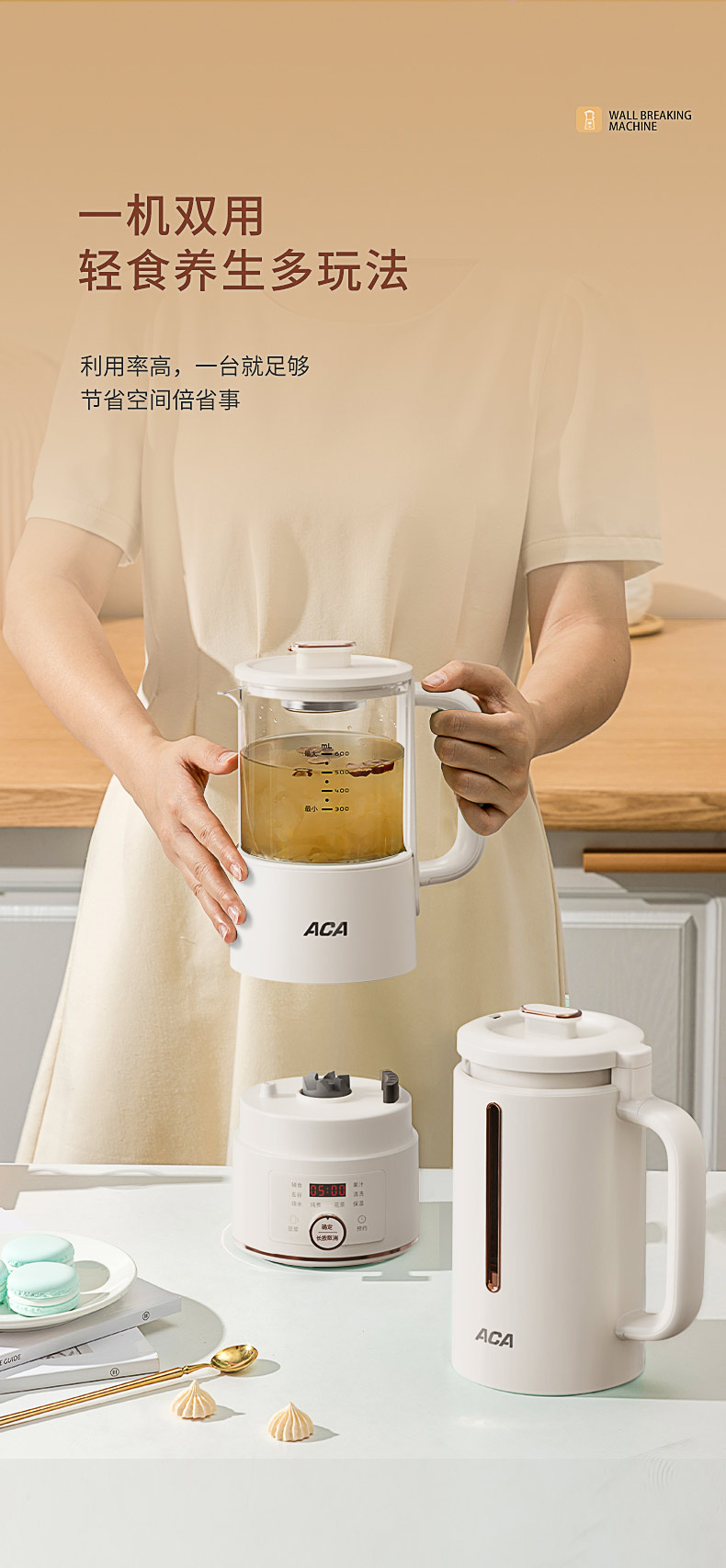 ACA/北美电器600毫升一机双杯破壁机组合ALY-G14PB12DR