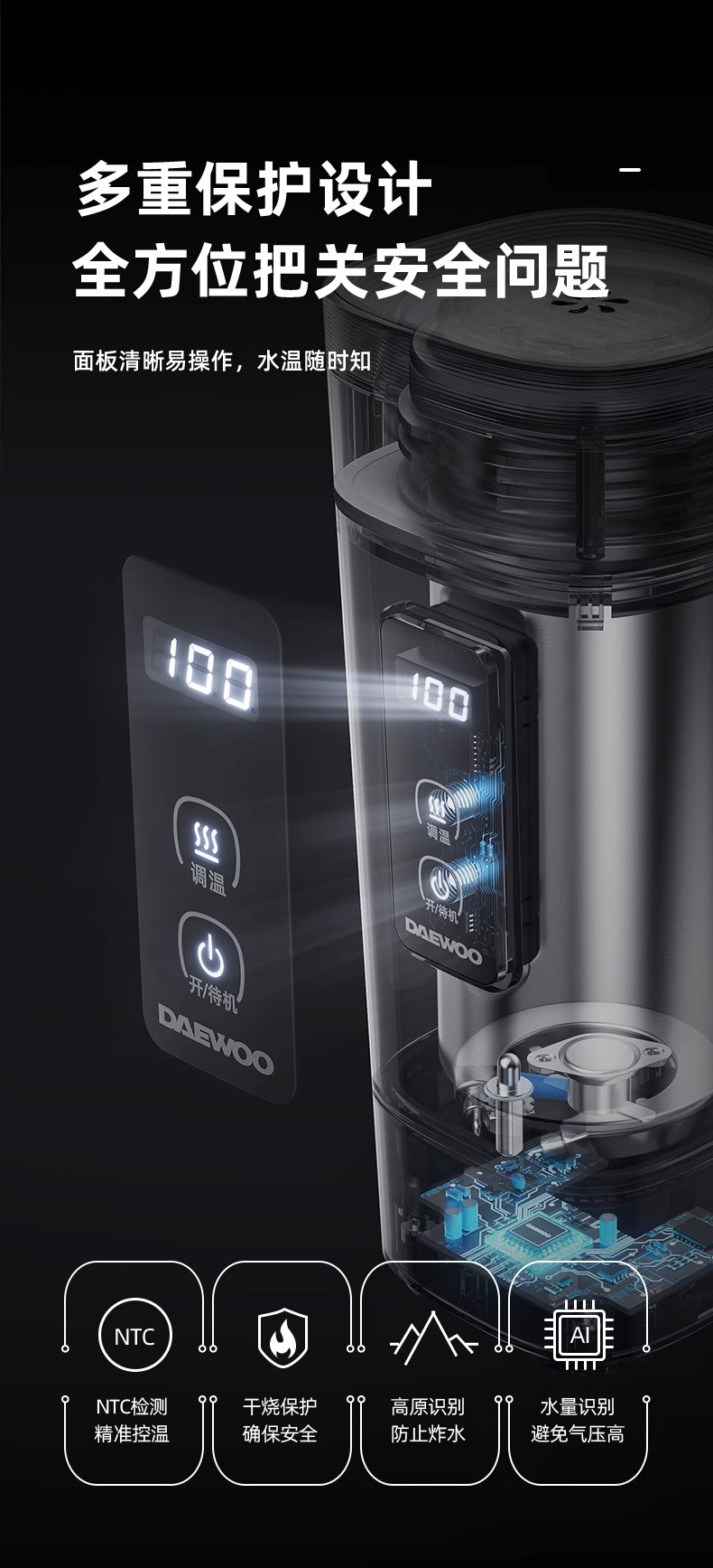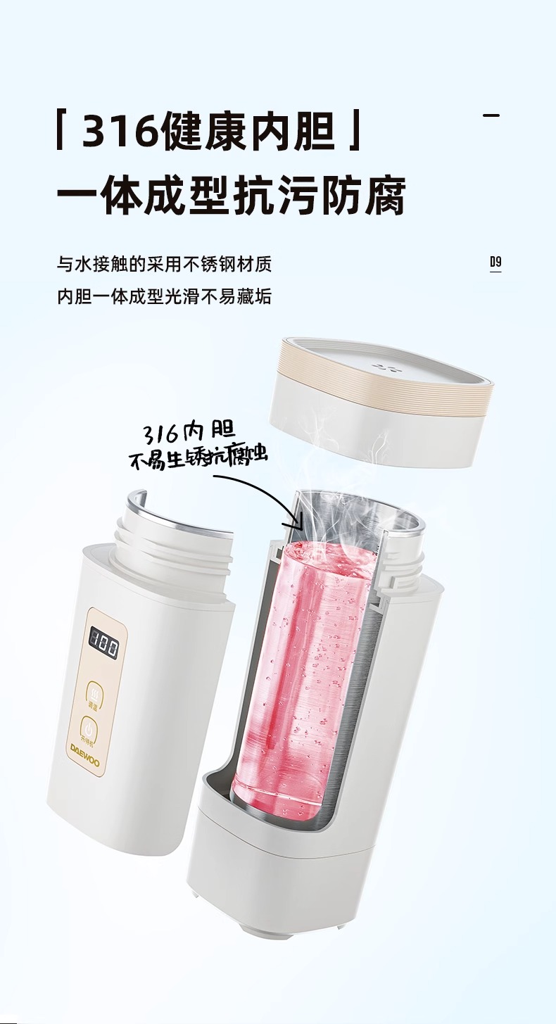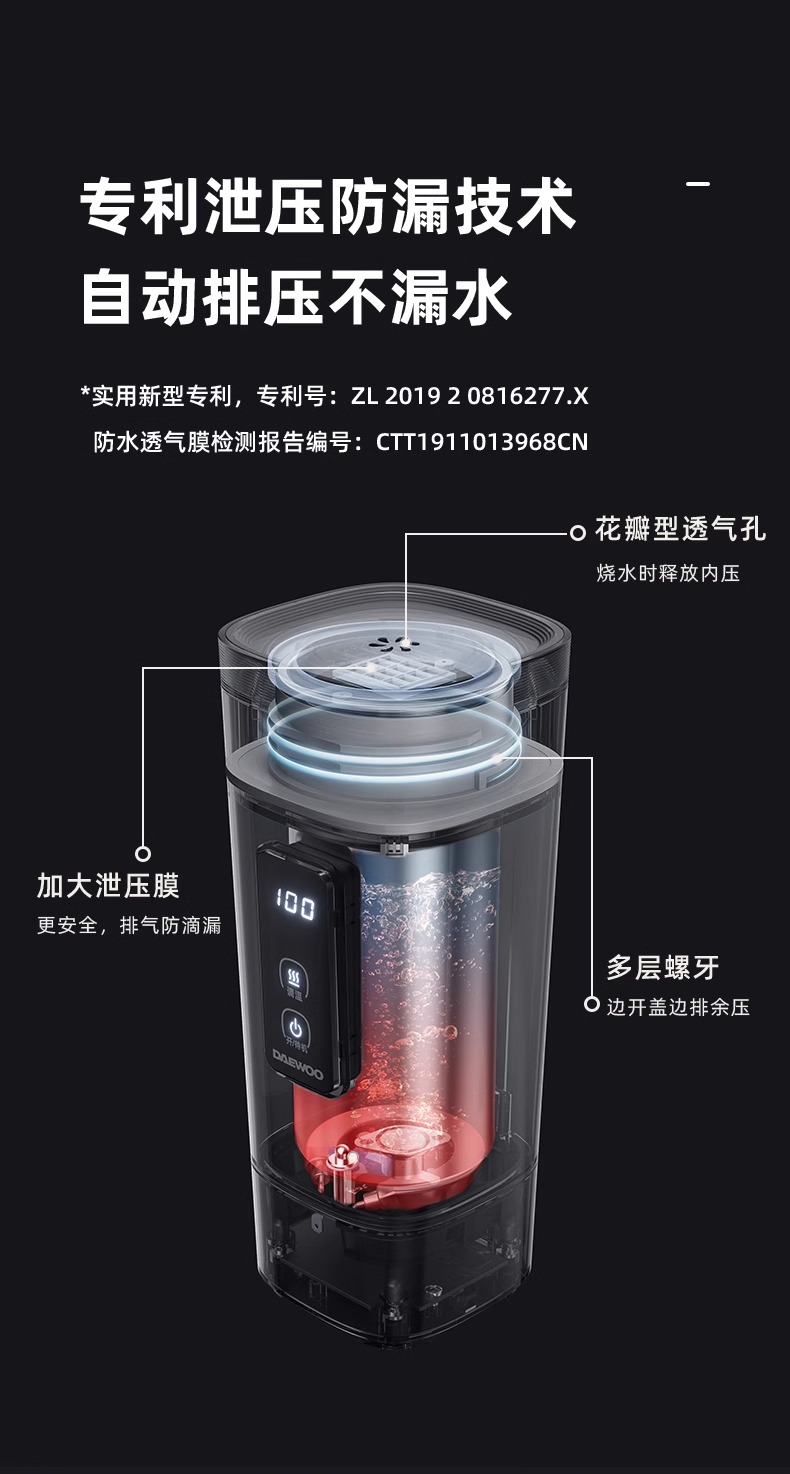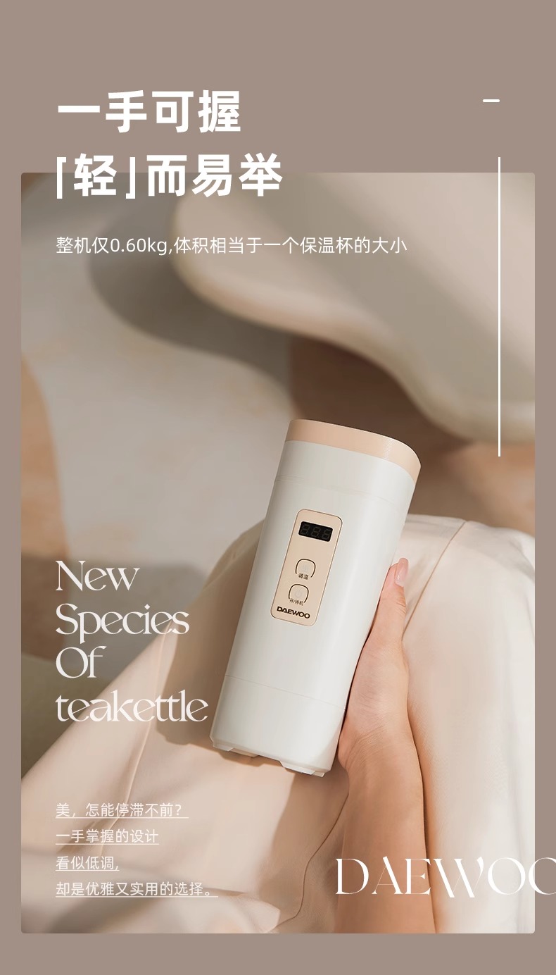 DAEWOO/大宇450毫升礼盒特别版电烧水壶-复古红D9