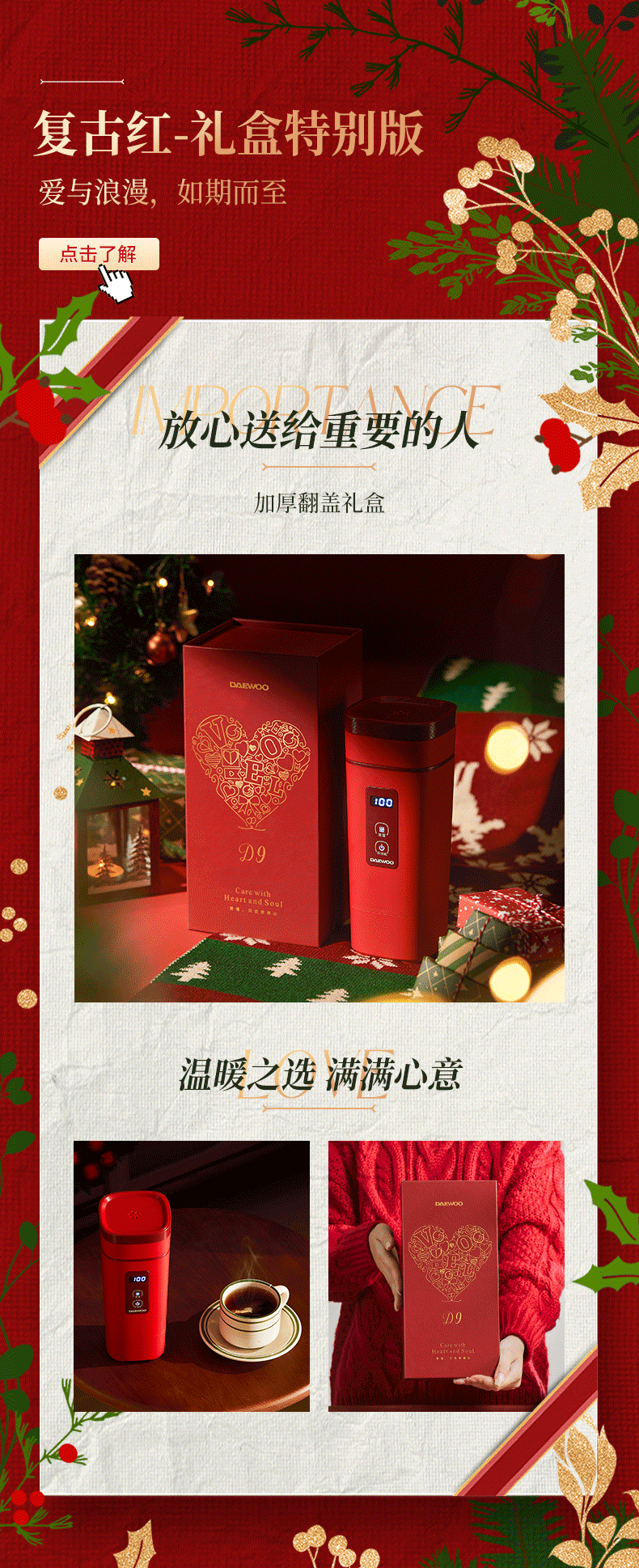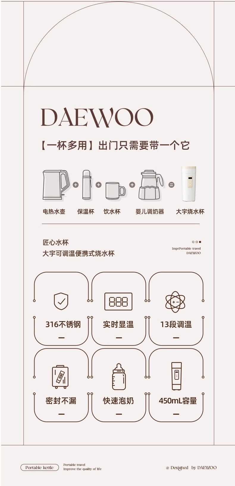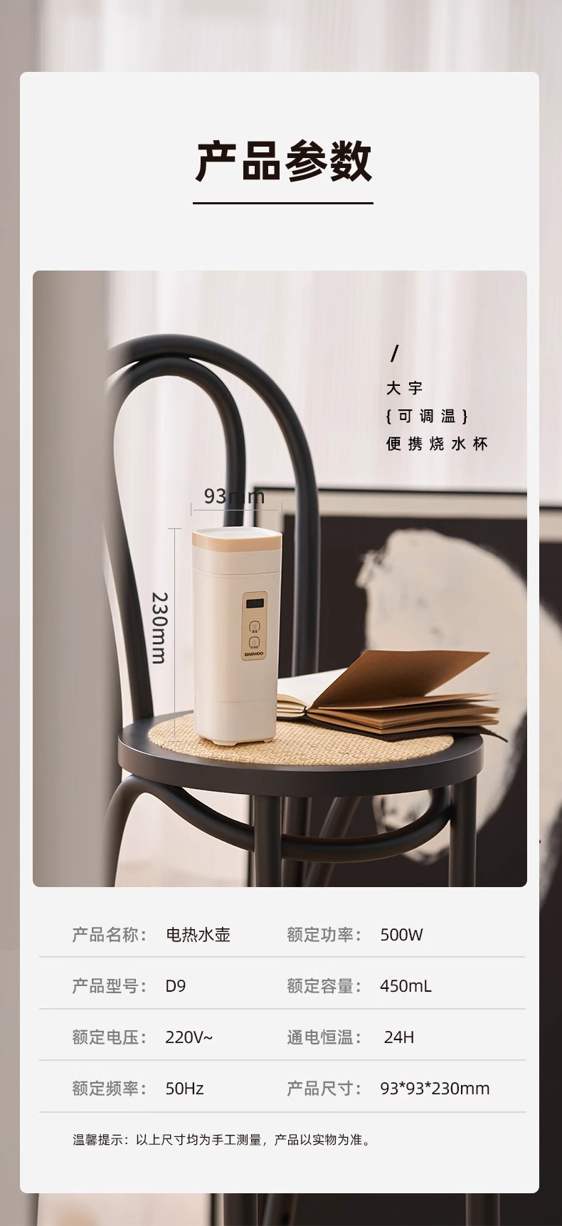 商品名称:DAEWOO/大宇450毫升礼盒特别版电烧水壶-复古红D9