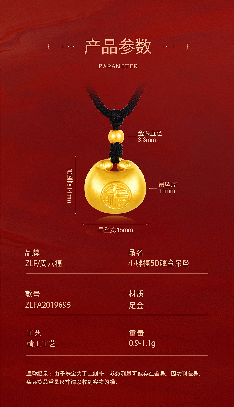 商品名称:周六福小胖福5D硬金吊坠ZLFA041966