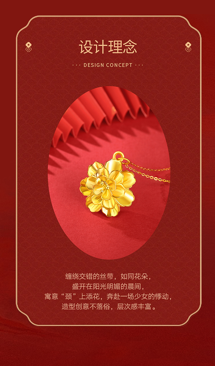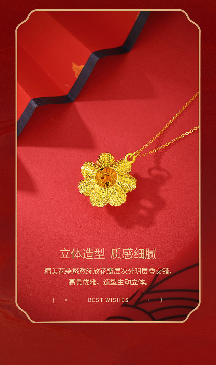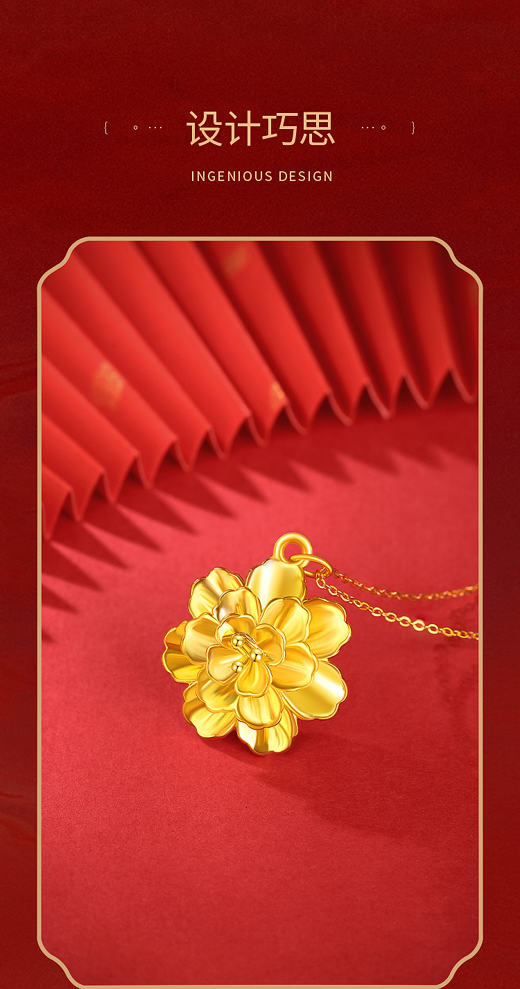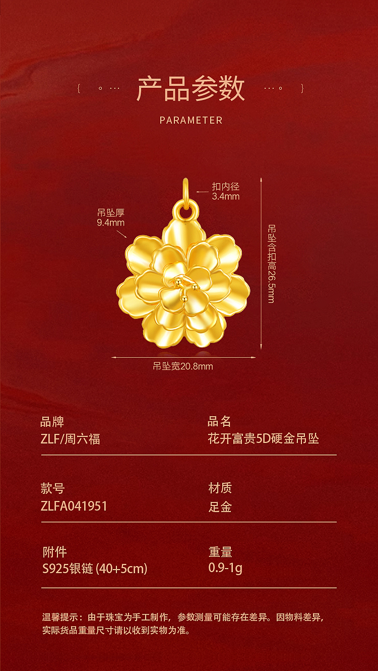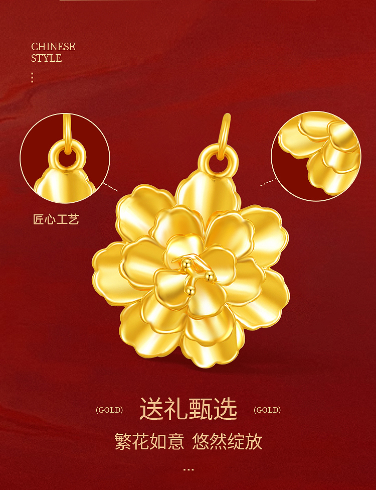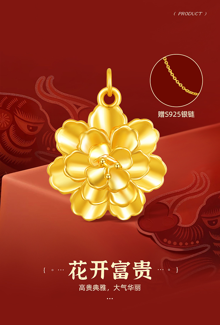 商品名称:周六福花开富贵5D硬金吊坠-送S925银链ZLFA041951