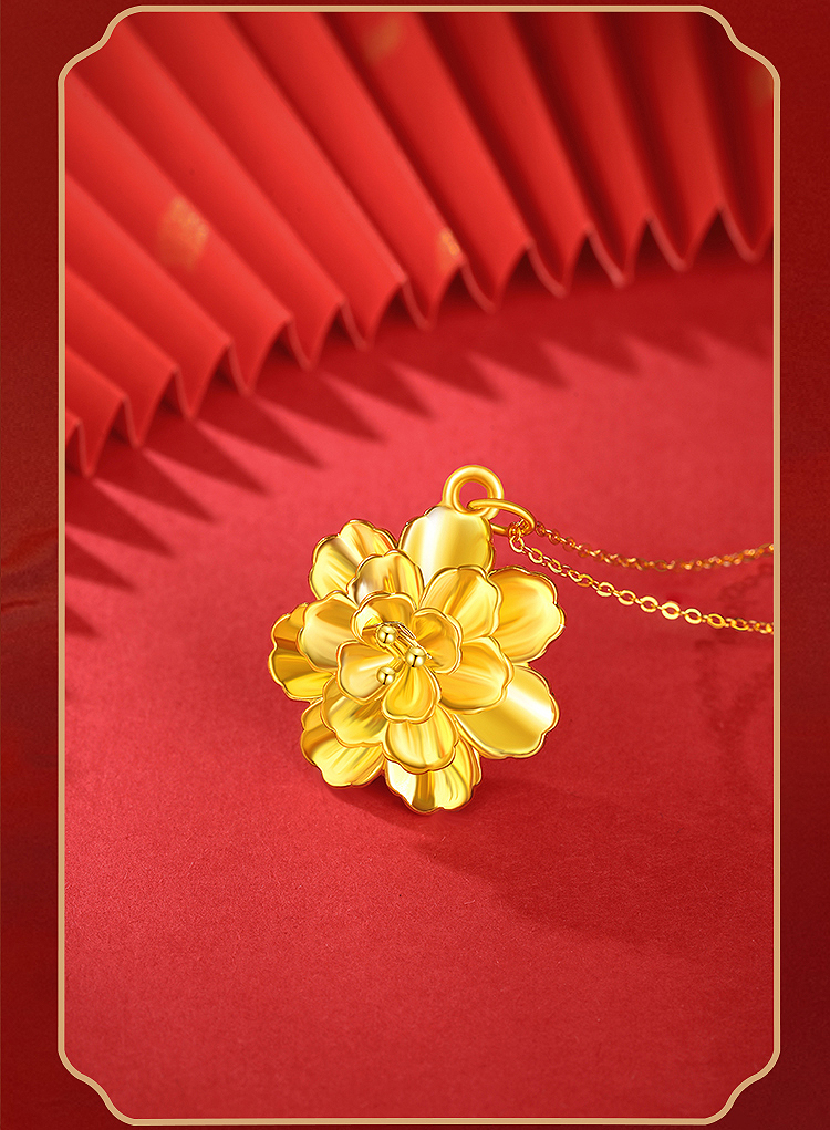 周六福花开富贵5D硬金吊坠-送S925银链ZLFA041951