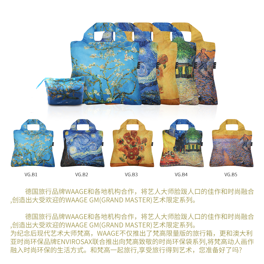 Envirosax春卷包梵高名画系列环保袋 颜值在线 牢固结实 可折叠防泼水 明星爱用 出游必备扩容
