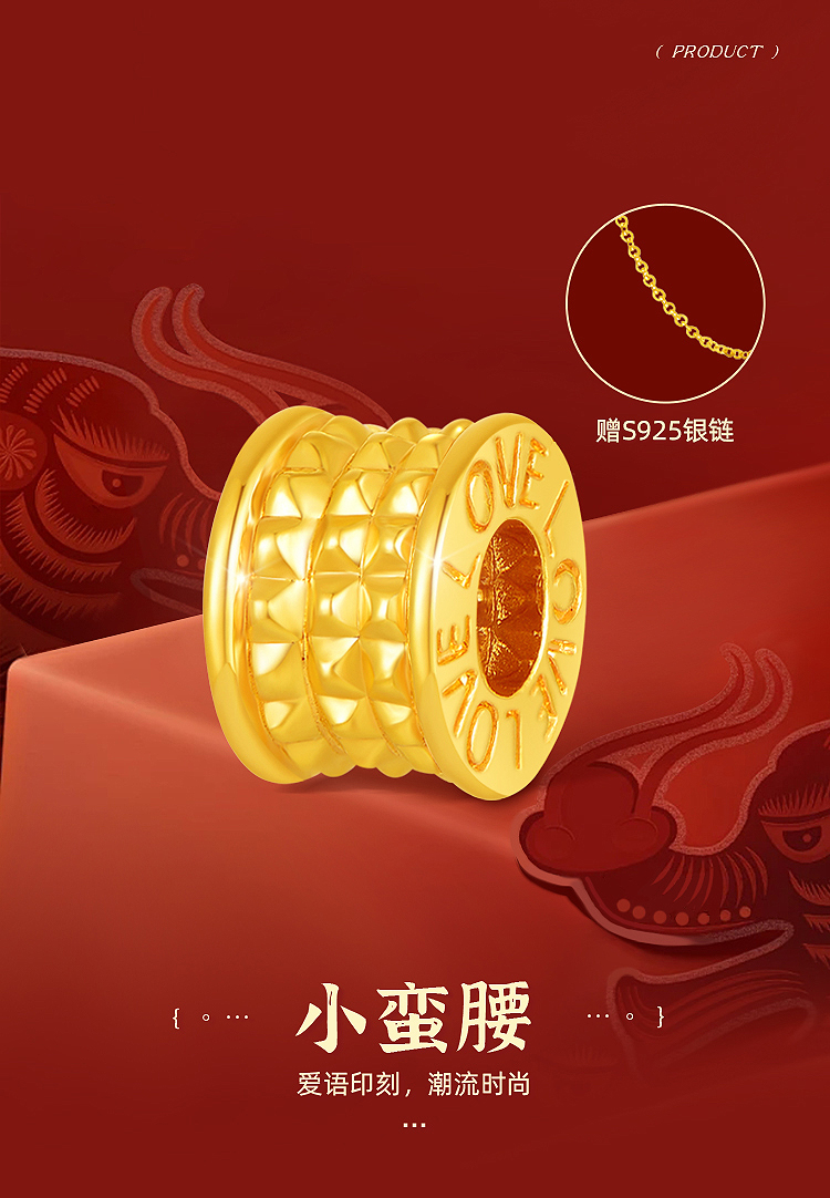 周六福小蛮腰5D硬金吊坠-送S925银链ZLFA041952