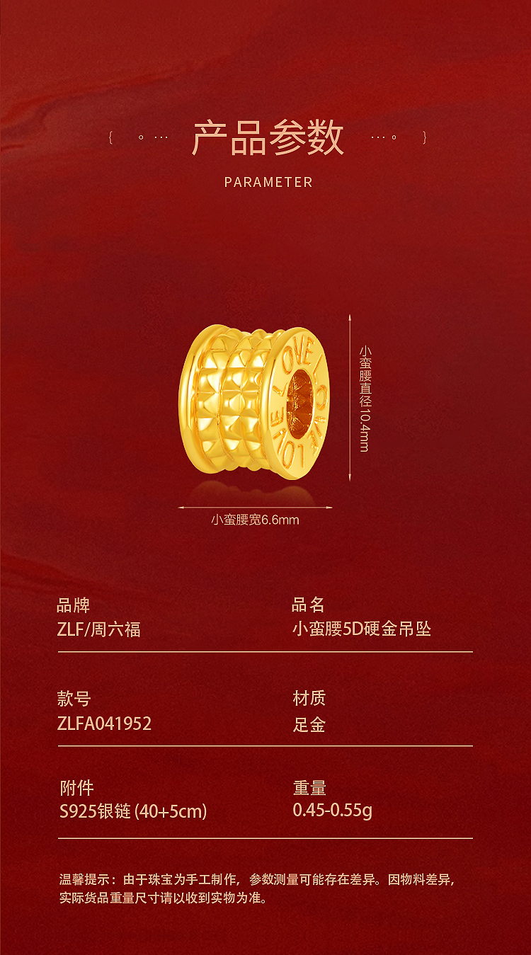 商品名称:周六福小蛮腰5D硬金吊坠-送S925银链ZLFA041952